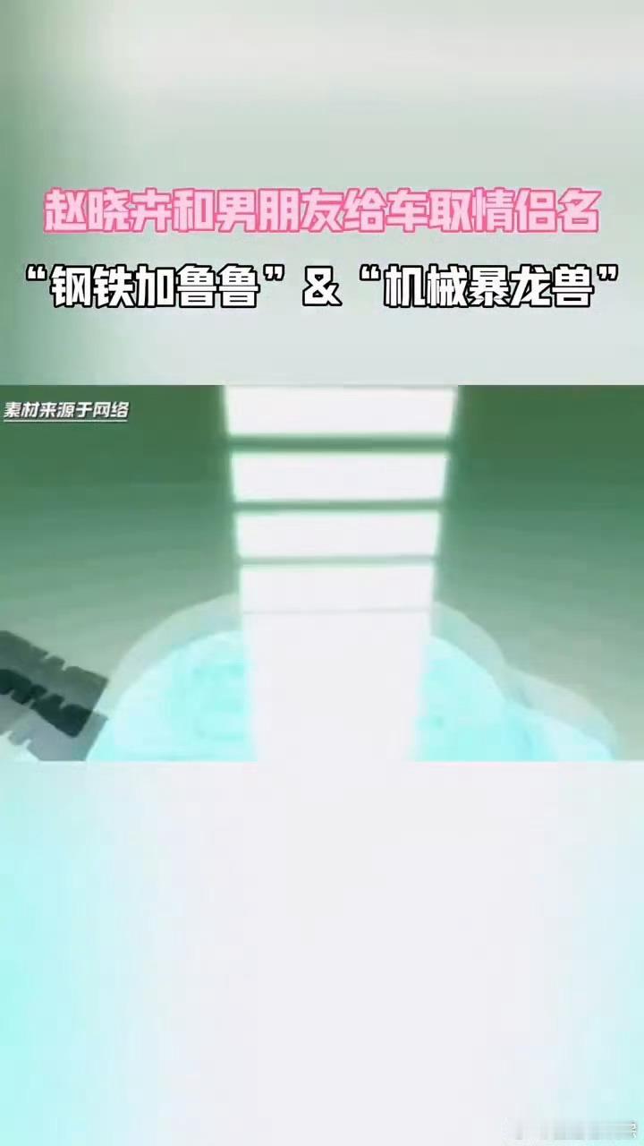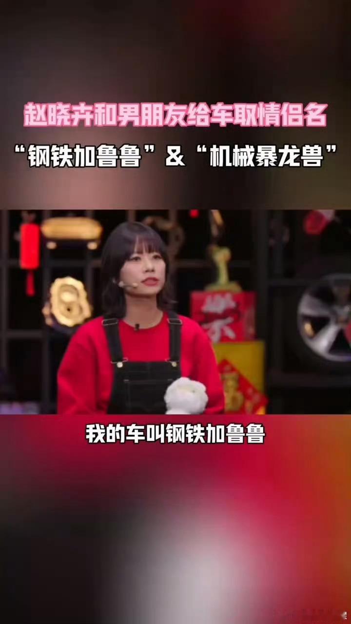赵晓卉的车叫钢铁加鲁鲁 赵晓卉和男朋友给车取情侣名 赵晓卉和男朋友把车名玩出了新高度!钢铁加鲁鲁与机械暴龙兽,不仅是情侣名,更是童年的回响。在众多奇葩车名中,这一对就像宝藏,既有甜蜜氛围,又充满情怀,太赞了!