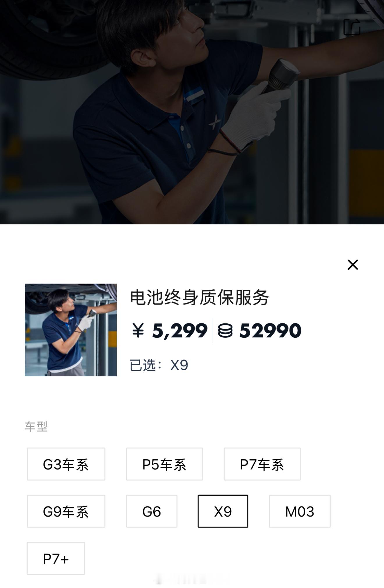 昨天有网友在评论区说选了 5 年免息,X9就没有三电终身质保,改为 8 年 16 万公里,另外也没有家充桩权益,三电这里电池终身质保可以在小鹏 app 买,另外我们都有教师资格证,可以直接享受电池终身质保