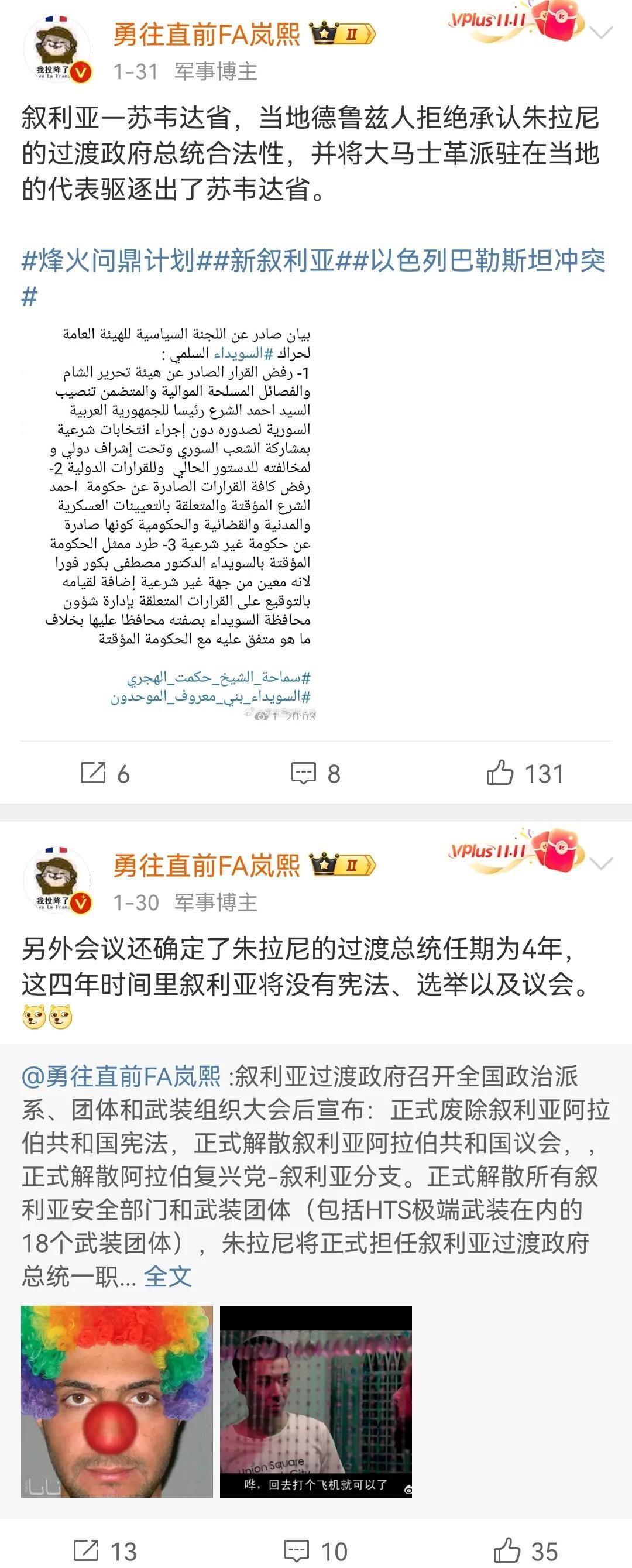 与此同时,叙利亚国内的局势也颇为动荡。叙利亚过渡政府宣布朱拉尼成为过渡总统,并计划组建过渡政府来管理整个叙利亚。然而,美国对此并未表现出急于与新政府打交道的态度,甚至未考虑将HTS恐怖组织从黑名单上划除。这进一步加剧了叙利亚国内政治力量的博弈和国际社会的分化。