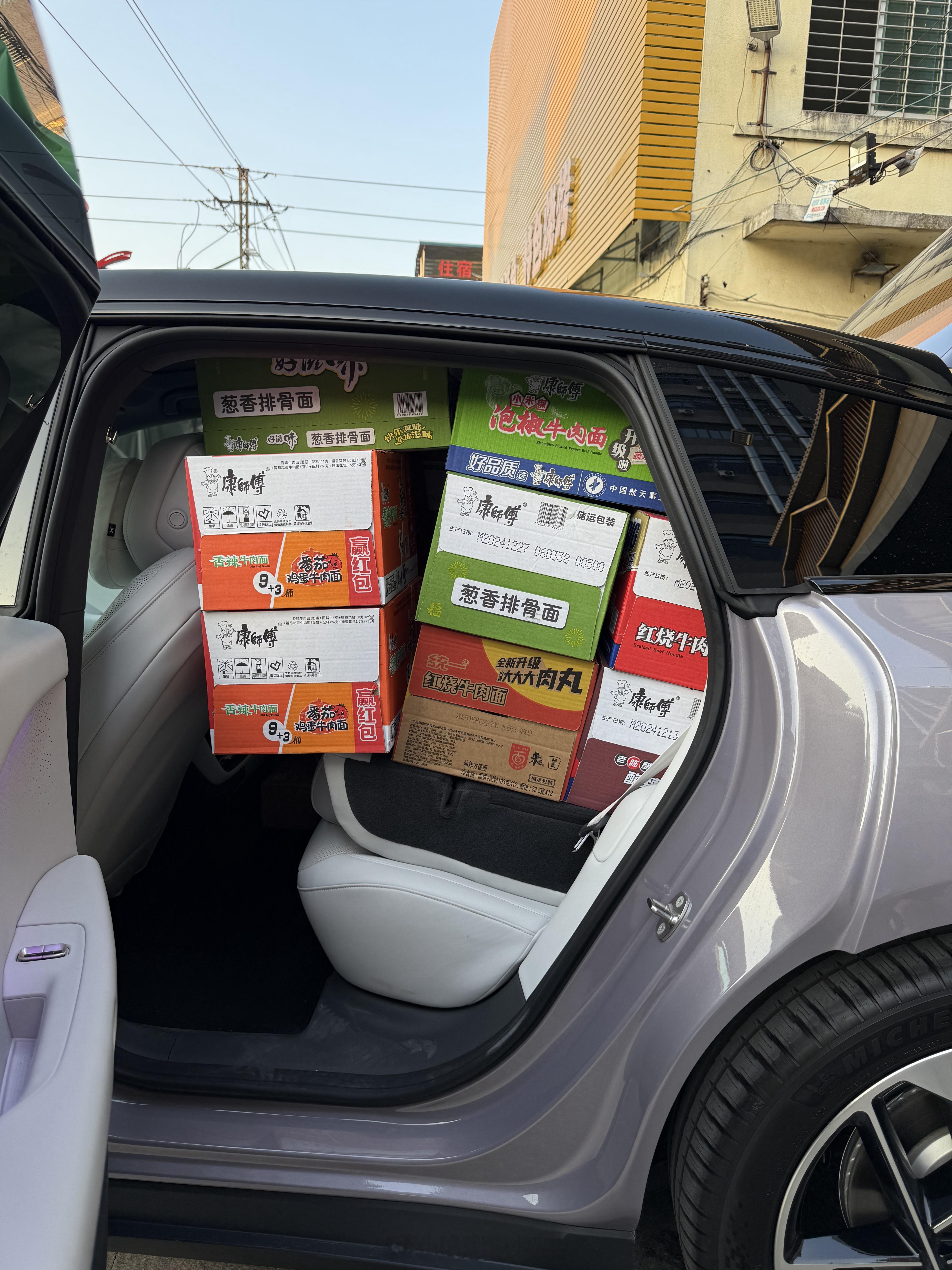答案是可以装下 42 箱泡面,营养搭配加多 4 箱纯牛奶🥛,二排是放倒状态,这个装载空间太强了