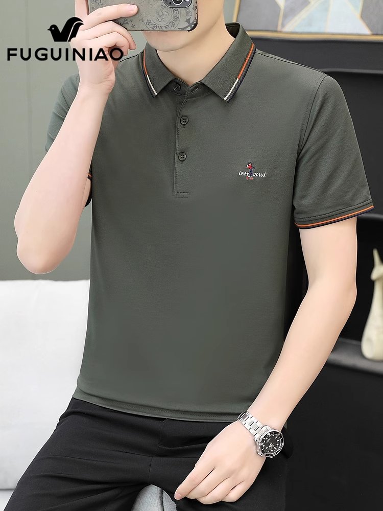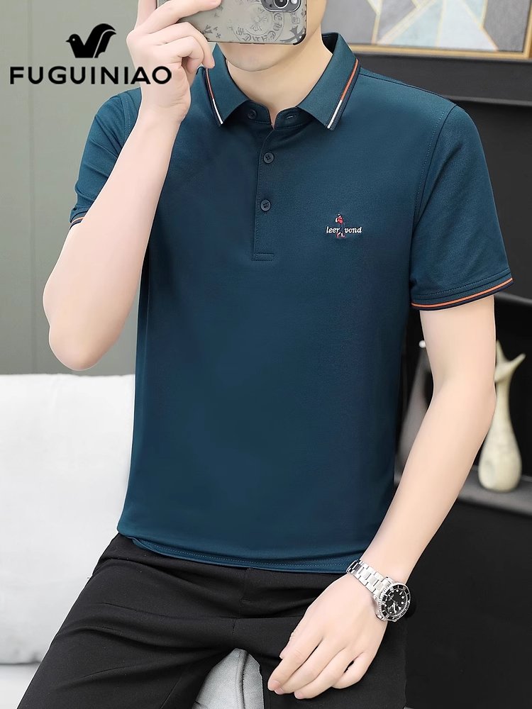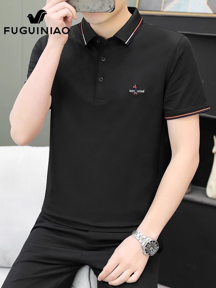 富贵鸟白色短袖t恤男士翻领上衣服夏季新款商务休闲Polo衫男