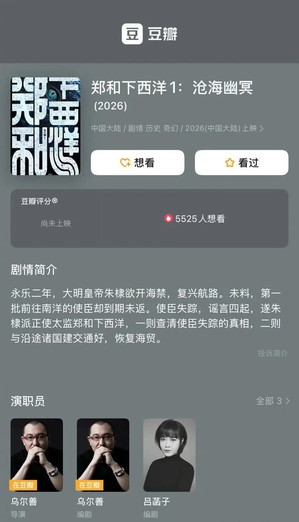 乌尔善曾经说过,要把《郑和下西洋》打造成中国版的“加勒比海盗”。剧情大概已经发出来了,悬疑破案的路线,大家觉得《郑和下西洋》会爆吗