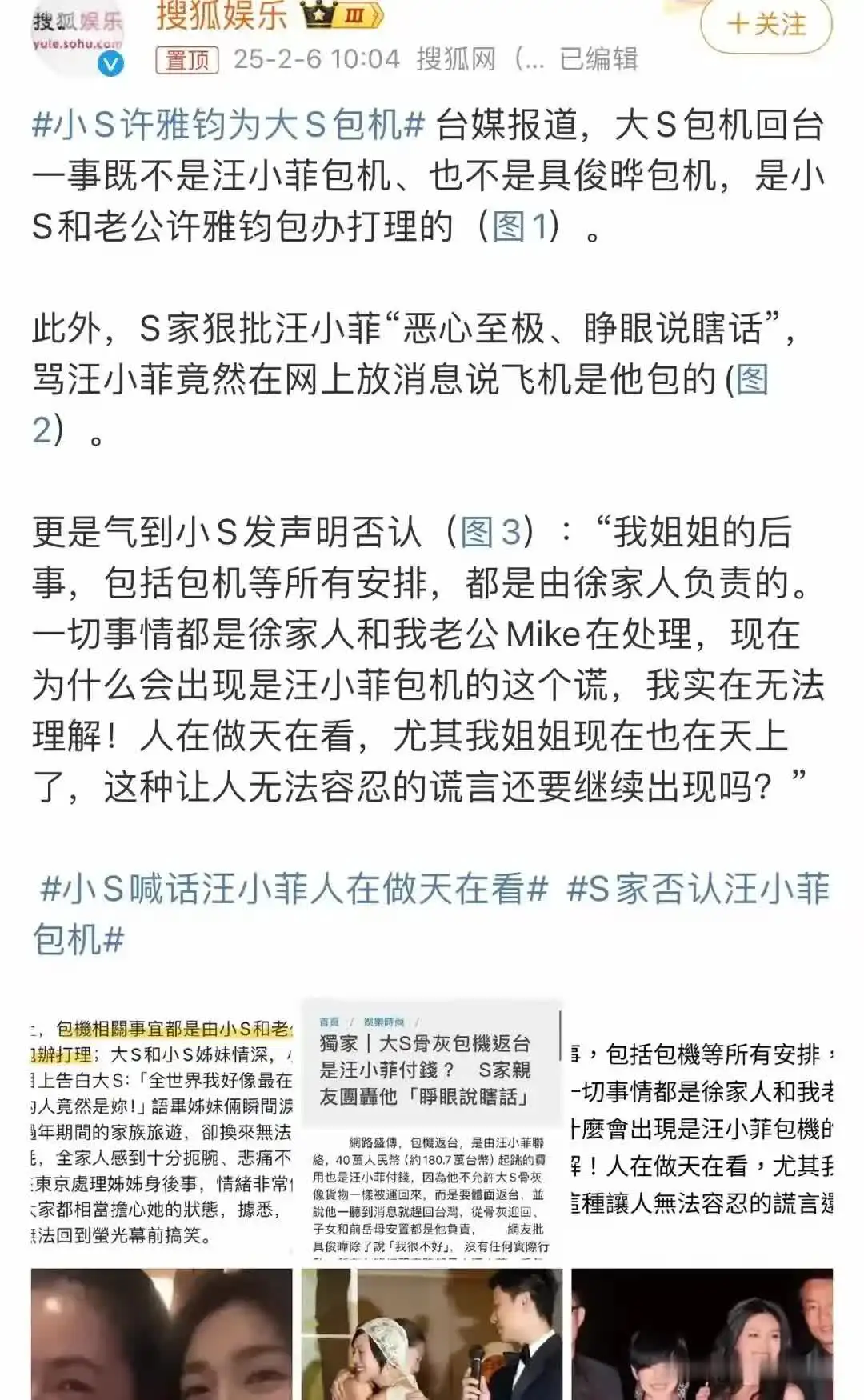 那个因为包机功劳被提前抢走而勃然大怒、公然大骂前姐夫汪小菲“人在做天在看”的小S,那个因为自己想跟姐姐说说话就决定把大S骨灰坛永远放在大S家里的小S,注定反噬才刚刚开始