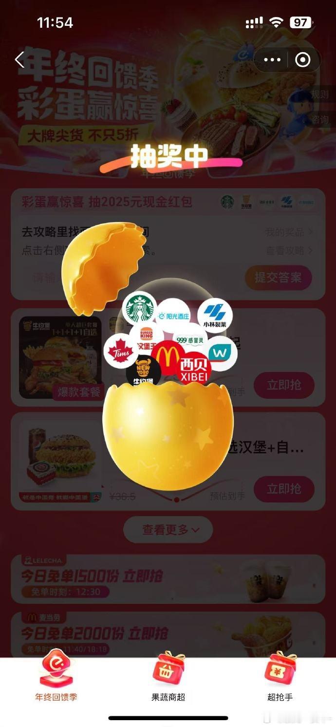 元旦让打工人实现了上四休三 别人的元旦:在人山人海里面励志出片;我的元旦:在抽奖抽到手软哈! 元旦一天假年轻人怎么过 强烈推荐友友们去饿了么抽年终福利,有2025元红包、无门槛红包和专享红包,还有超万份大牌免单!饿了么这个年终我尊嘟爱了!友友们,现在上饿了么搜「彩蛋」进入活动页面就有机会抽取以上福利~