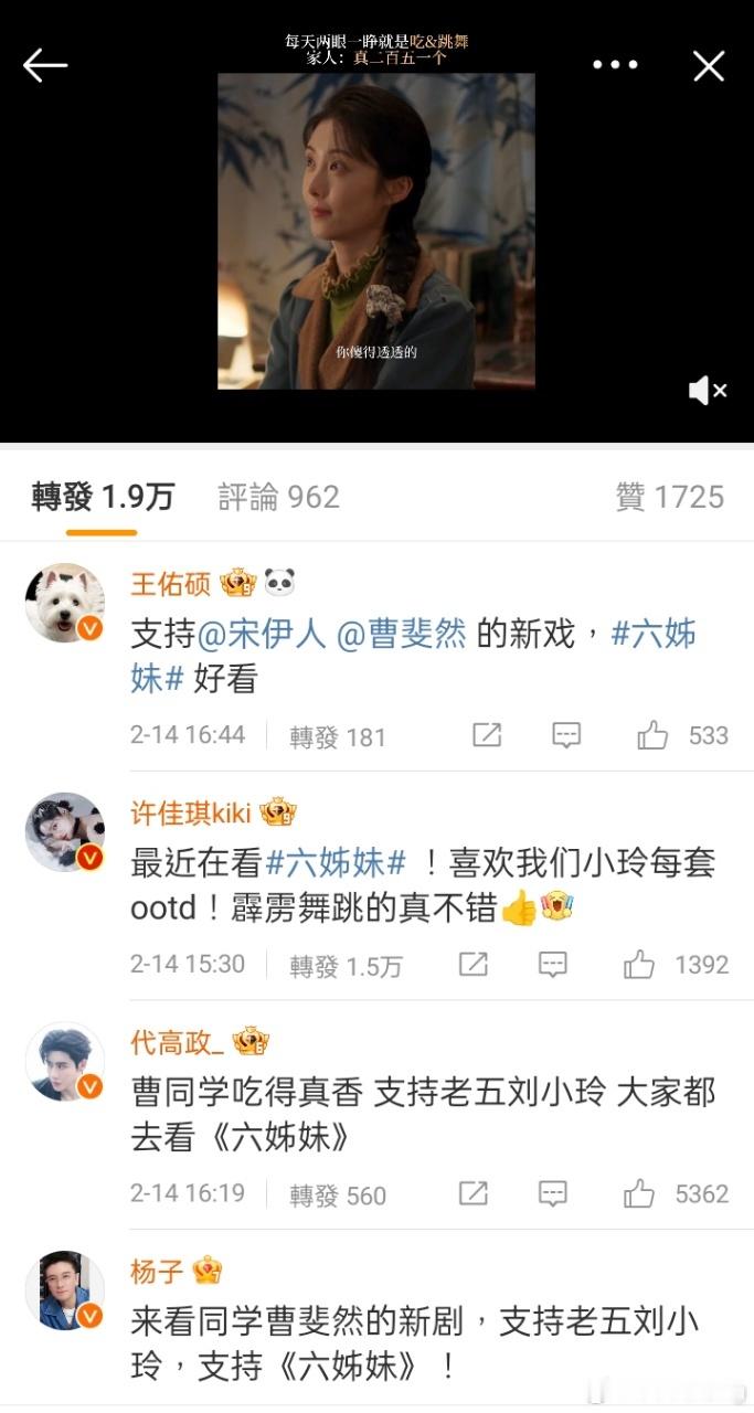 曹斐然的朋友圈真是让人意外,没想到大多数都是演员请就位3里的,六姊妹是大家团建的第二个平台吗哈哈哈哈
