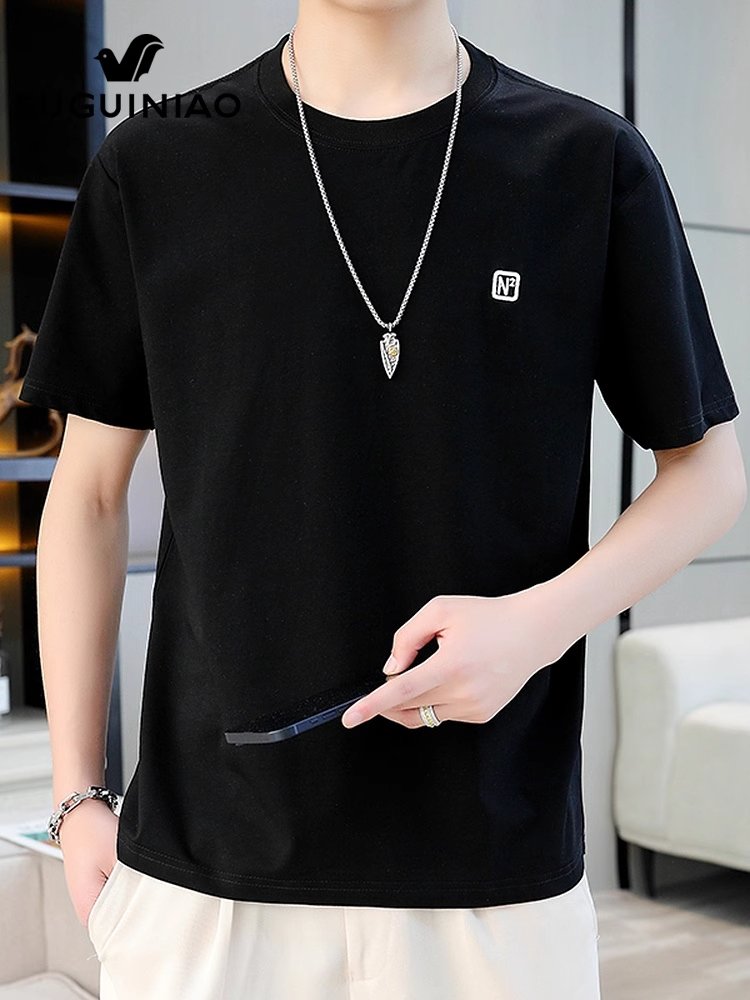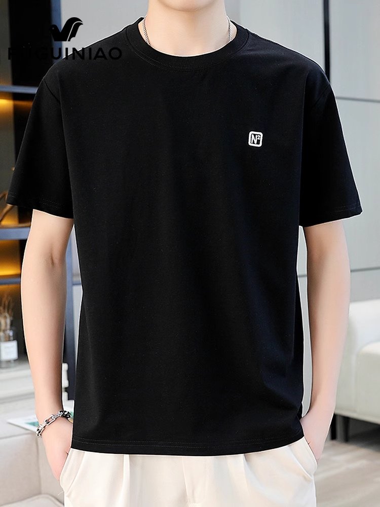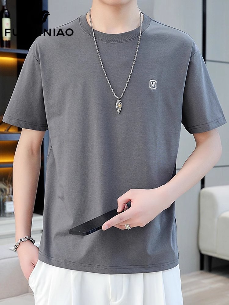 富贵鸟白色短袖t恤男士夏季新款半袖上衣服宽松休闲圆领体恤男装