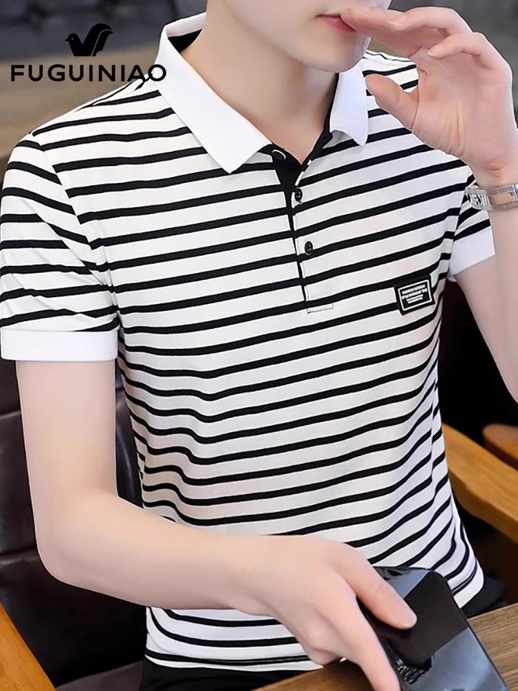 富贵鸟条纹短袖polo衫男士休闲翻领上衣服夏季新薄款半袖t恤男装