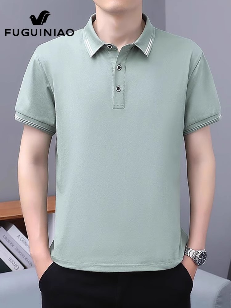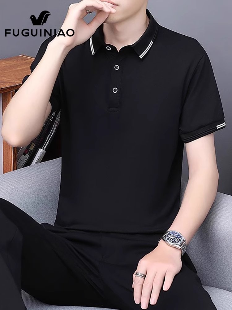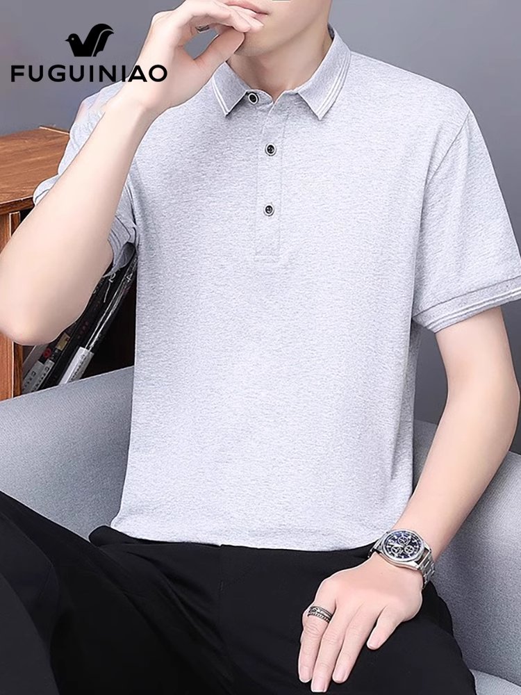 富贵鸟白色翻领Polo衫男士夏季新款半袖上衣休闲短袖t恤男