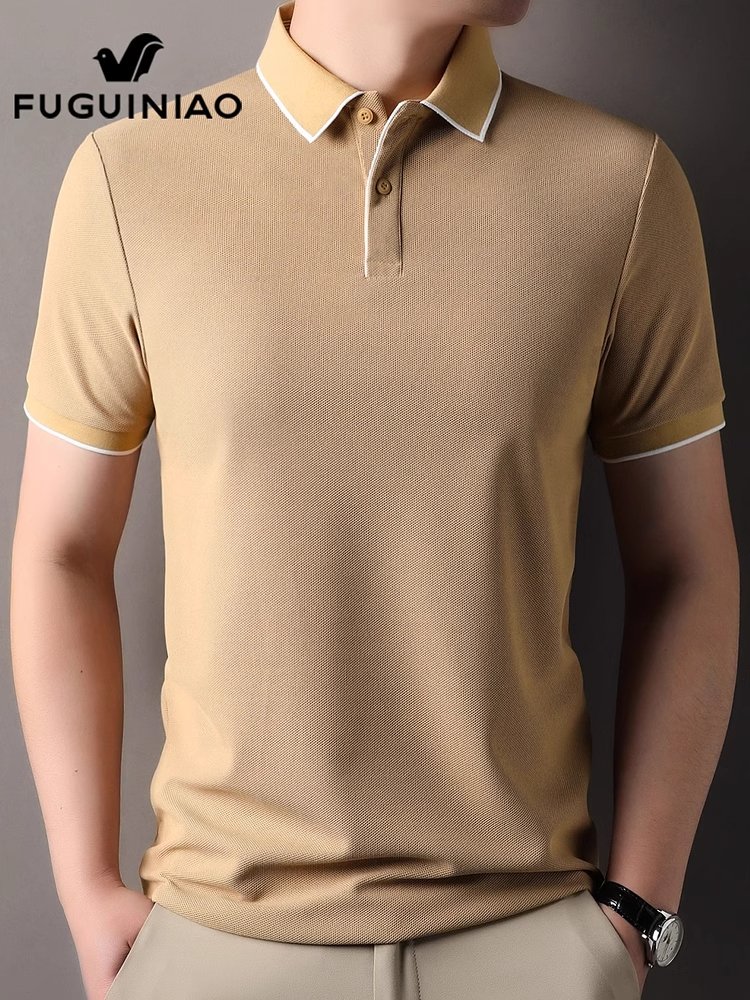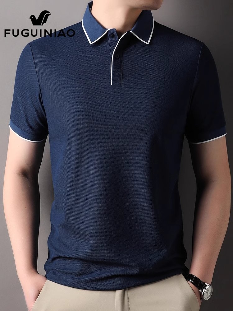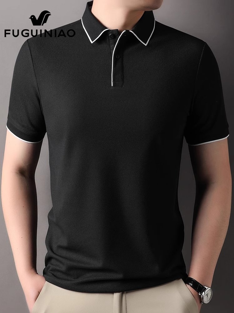 富贵鸟白色短袖Polo衫男士夏季新薄款商务上衣服休闲翻领t恤男装