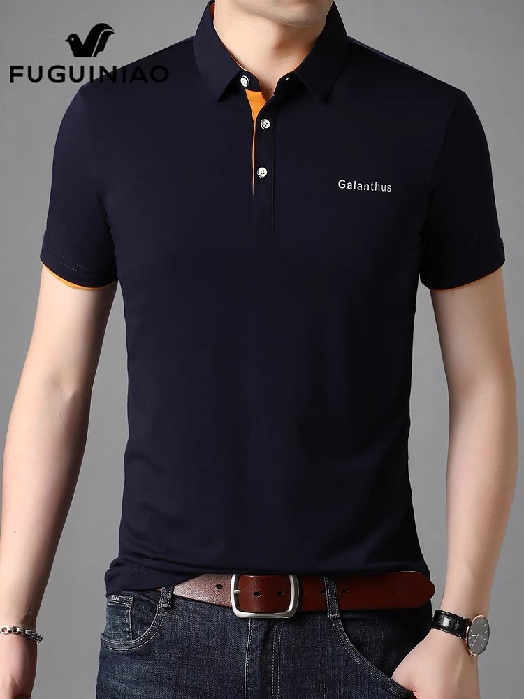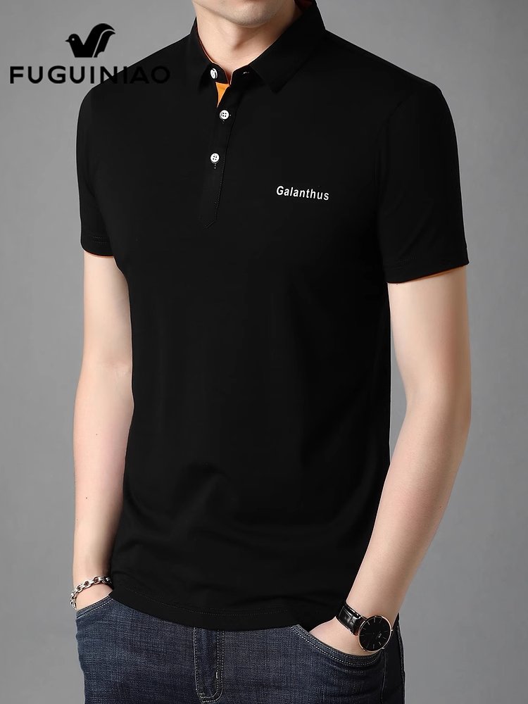富贵鸟纯棉短袖t恤男士夏季新薄款休闲黑色上衣服翻领Polo衫男装