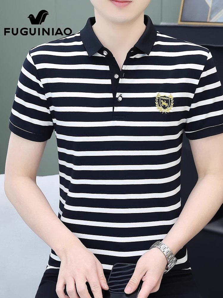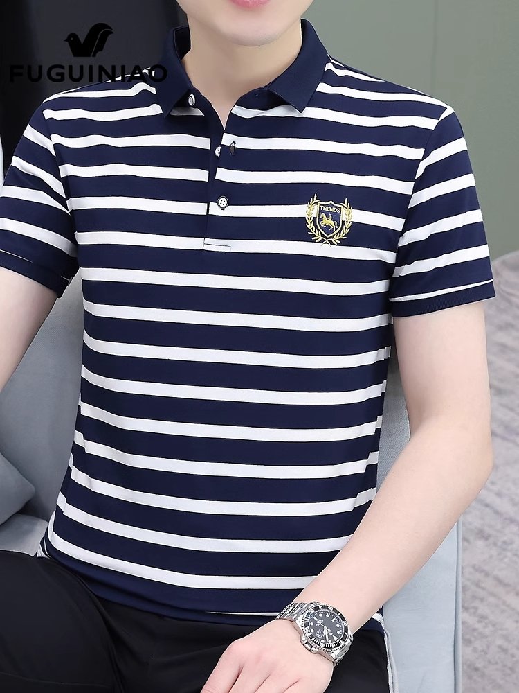 富贵鸟翻领短袖t恤男士夏季新薄款条纹上衣服休闲商务Polo衫男装