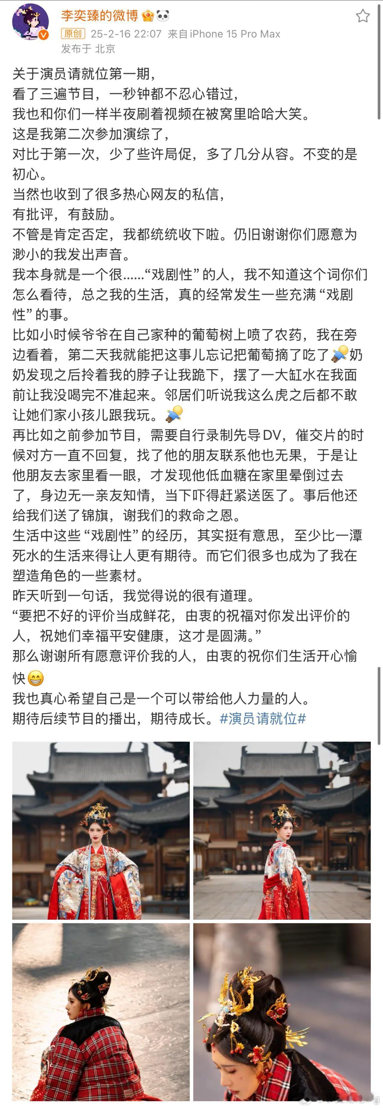 李奕臻说肯定和否定都接受超级真诚的姐姐,也太努力听粉丝的观众的建议,姐姐真的好