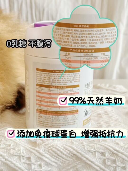 👌选用99%天然羊奶,采用🇺🇸杜邦酶解技术将乳糖分解为葡萄糖和半乳糖✅0乳糖配方,猫咪不腹泻,而且吸收率突破99.8%,好原料+0乳糖+高吸收,buff叠满了也属于是!