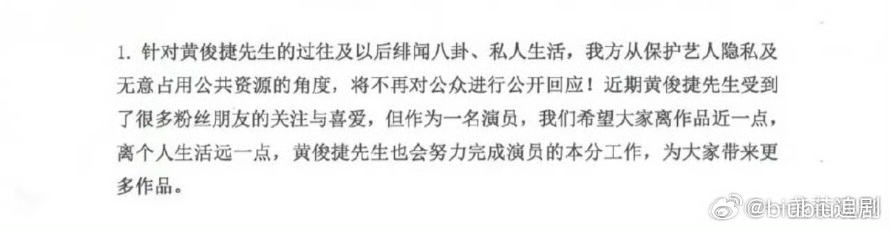 黄俊捷工作室更换置顶 黄俊捷工作室换置顶 黄俊捷工作室把置顶换了,以后那些绯闻八卦、私人生活的事儿就不回应了,要保护好艺人隐私。