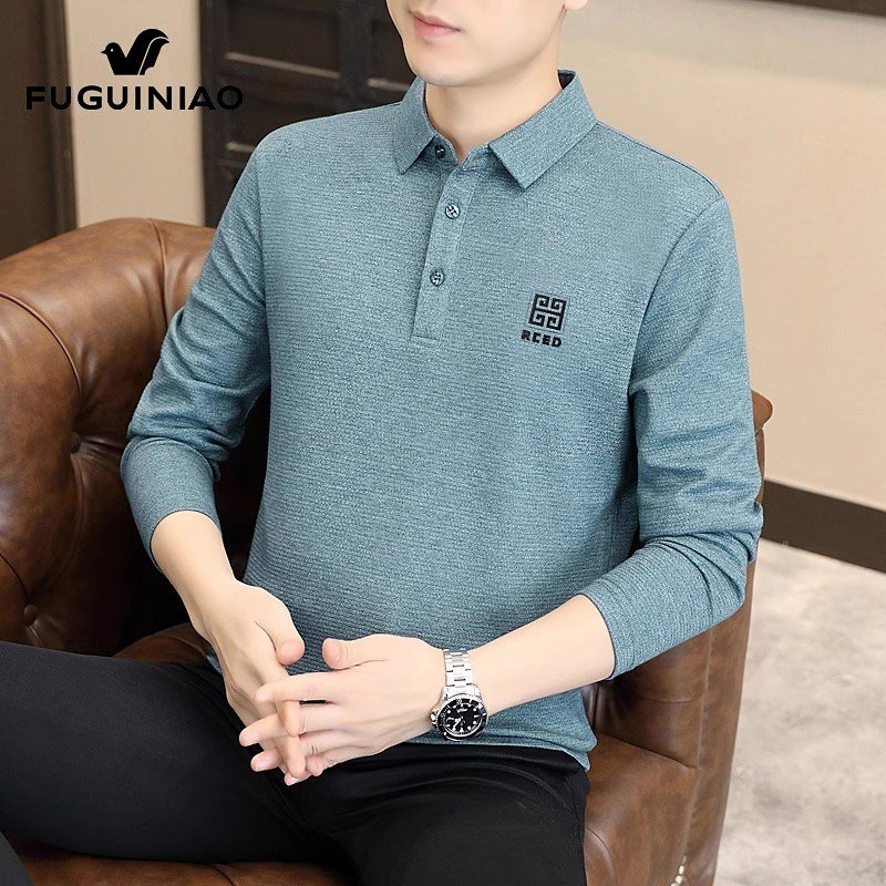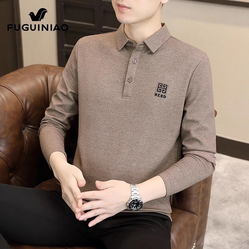 富贵鸟长袖t恤男士2025年春季新款潮流上衣服休闲翻领Polo衫男装