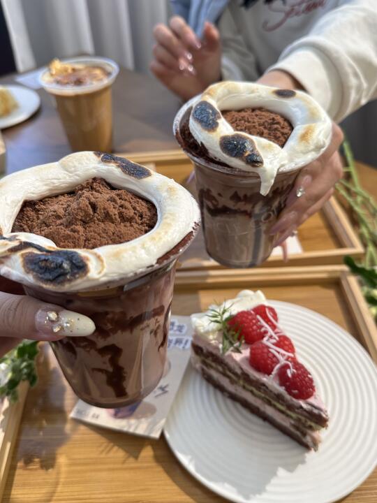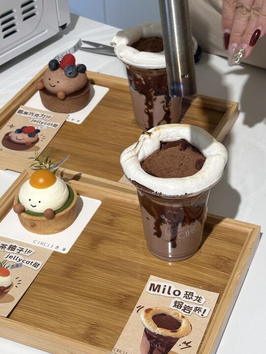 是谁吃到了庄里方圆百里最好吃的下午茶啊 是我!!!真的好幸福🥰 今天下午和闺蜜👭约下午茶 喝到了王嘉尔同款的恐龙熔岩杯