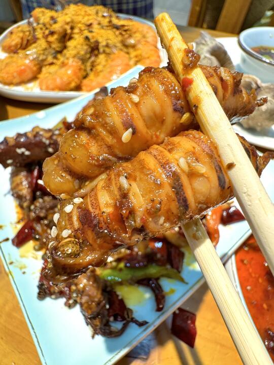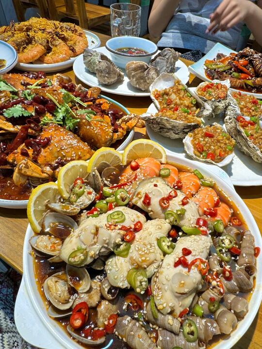 来青岛3刷的海岛啤酒屋!!真有一手!!! 我大爱香辣带籽笔管!!胖嘟嘟的每只都带籽,弹弹的香香辣辣的。很有咬头!! 真整条街就它家排队…难怪这么火,做的是真绝!! 螃蟹拌面也是我的爱!螃蟹老肥了,蟹膏蟹黄满盖,嗦面好香!! 我们四个人还点了清蒸海螺,原汁原味,转出来的都好肥,尾巴那块是苦胆但并不苦,好好吃…… 还有捞汁小海鲜,都是本地人家里常吃的:大虾、海蛎子、蛤蜊、海螺…点了一桌没有踩雷的