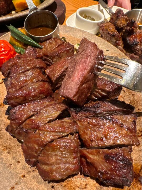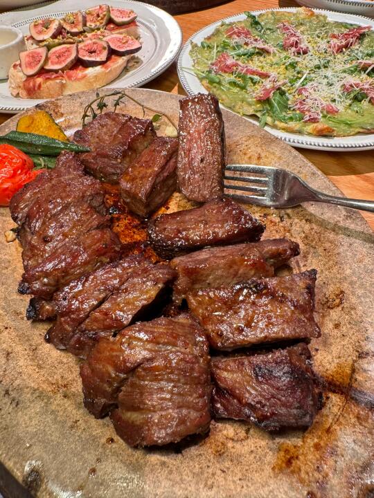 真的超爱吃他家的牛排,热盘上桌,肉很大块。芋泥提拉米苏也很不错,还是大表哥同款。
