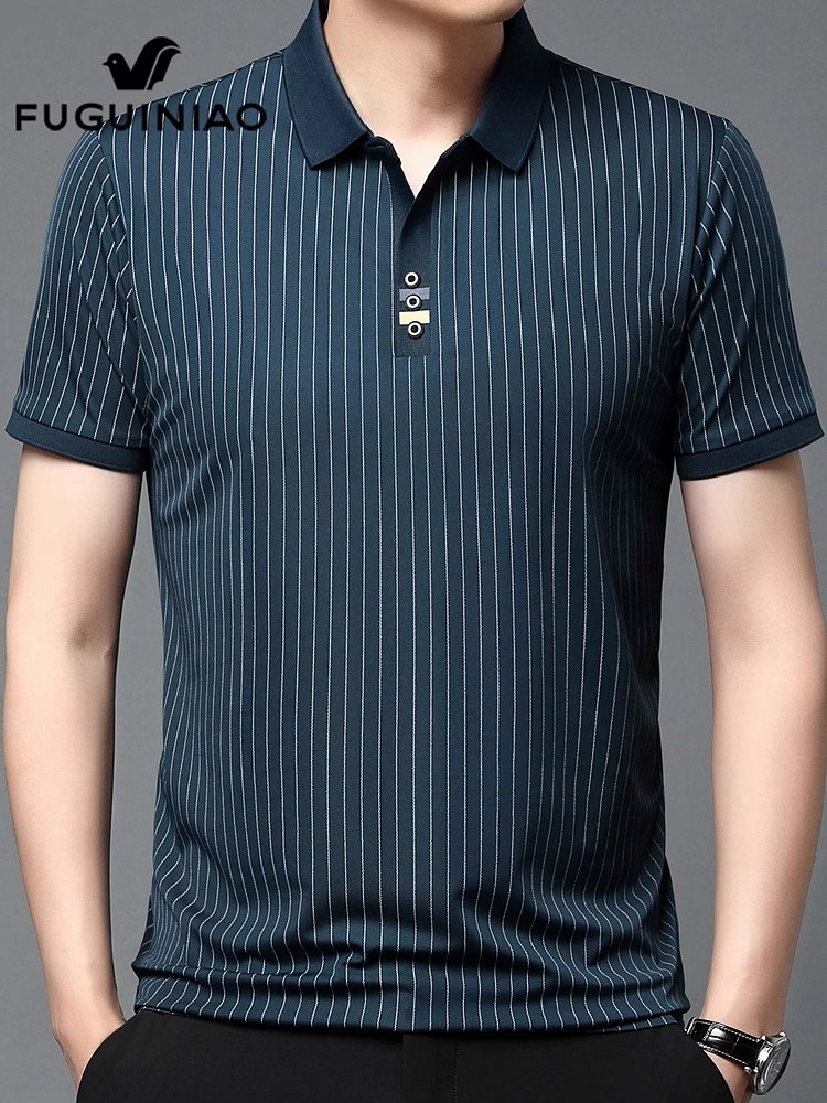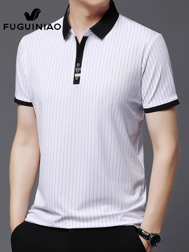 富贵鸟条纹短袖polo衫男士翻领上衣服夏季新薄款休闲半袖t恤男装