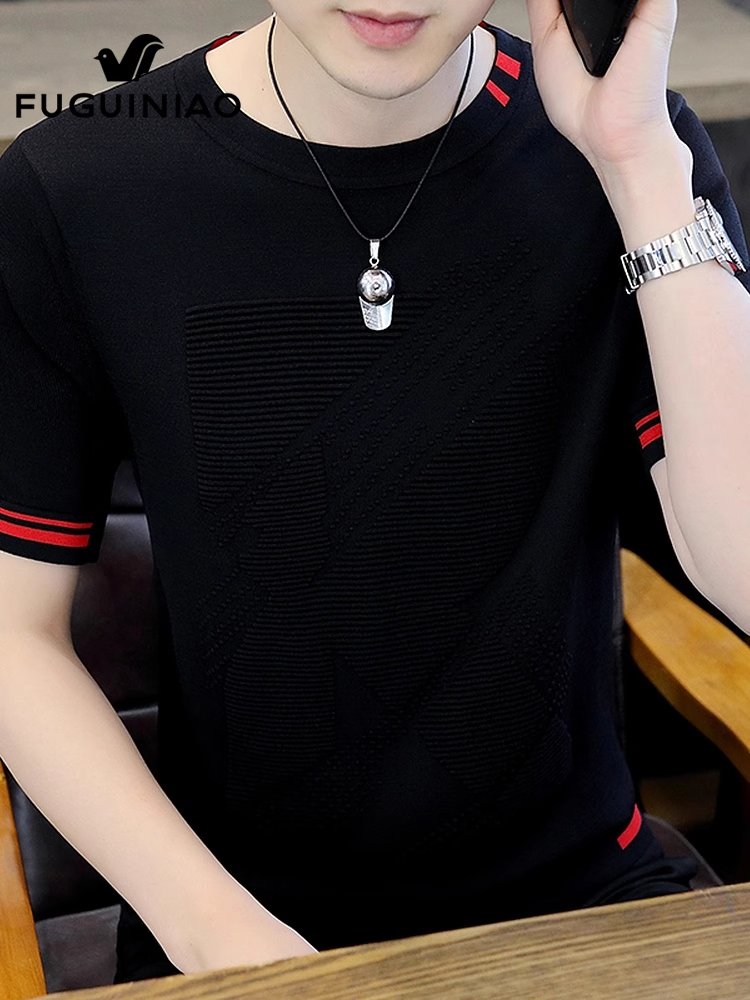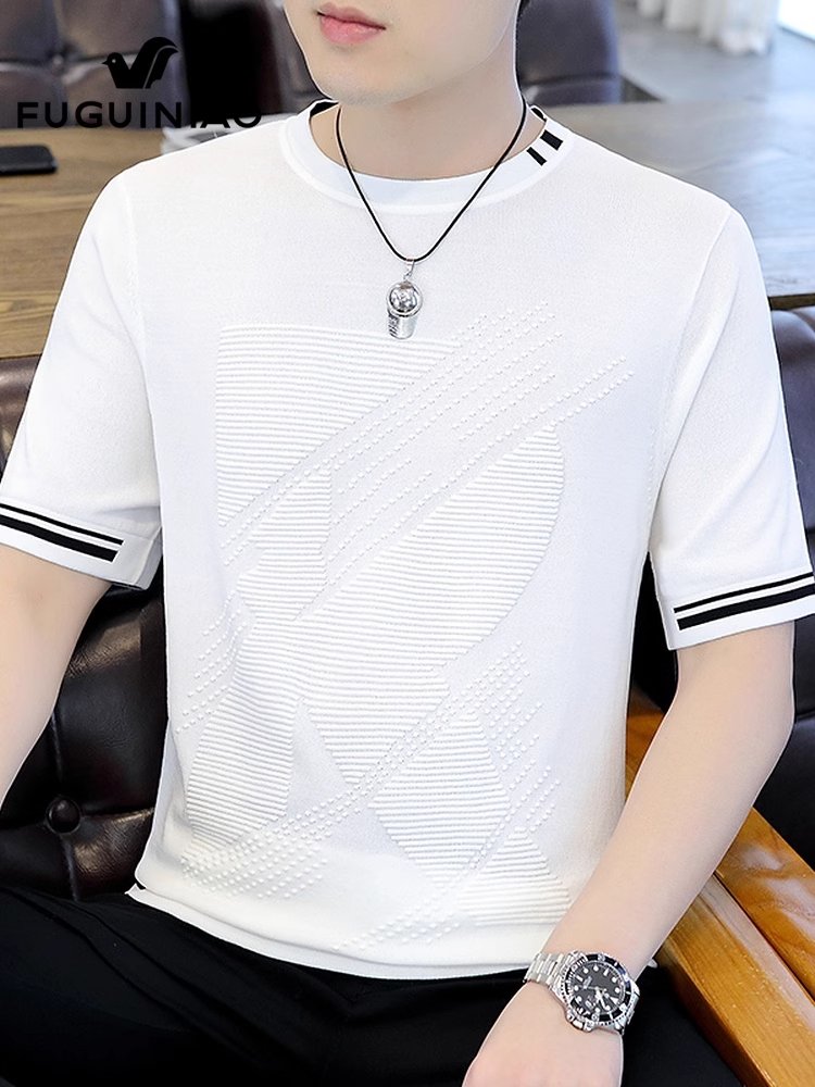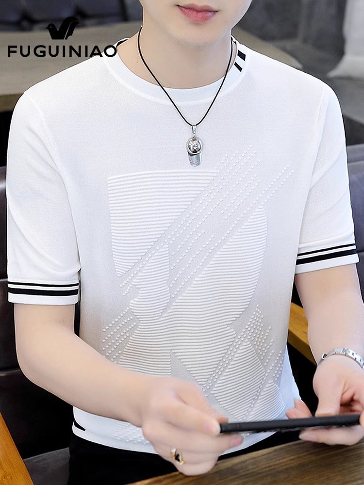 富贵鸟白色短袖t恤男士休闲圆领上衣服夏季新款潮流体恤男