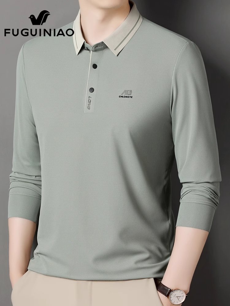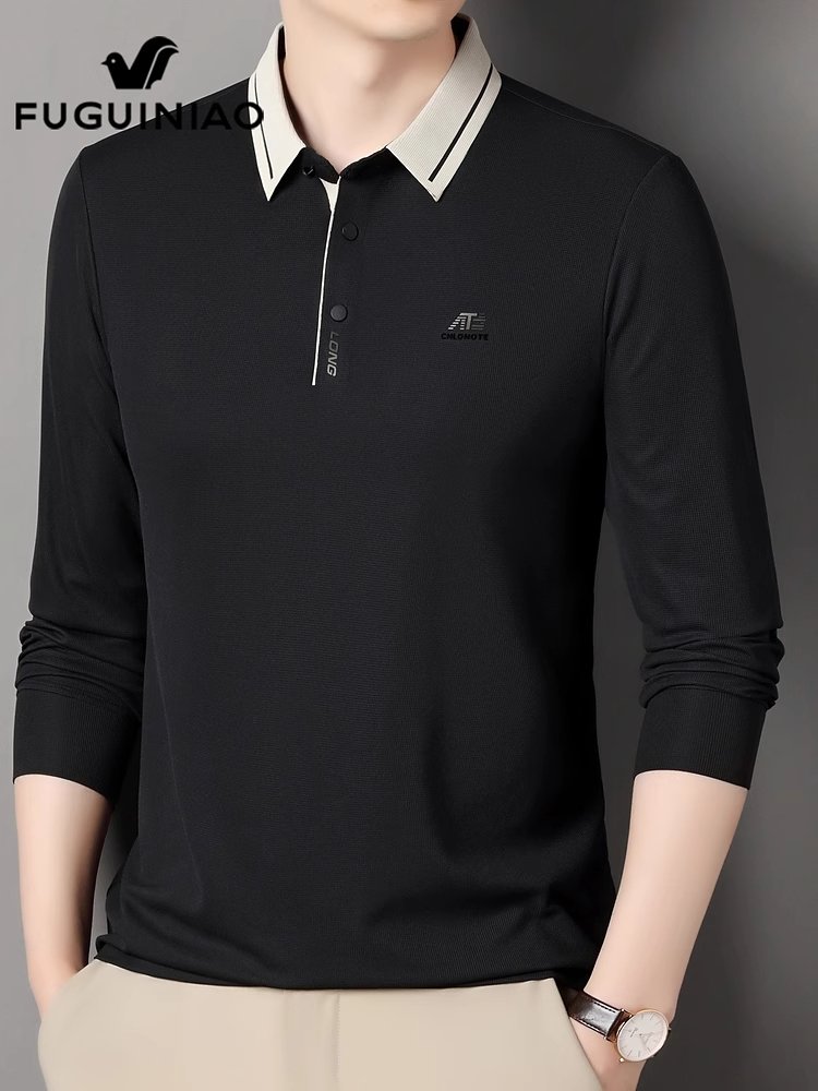 富贵鸟男士长袖t恤高端翻领打底上衣服春季新款休闲商务Polo衫男