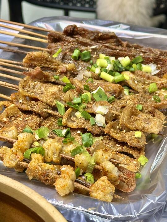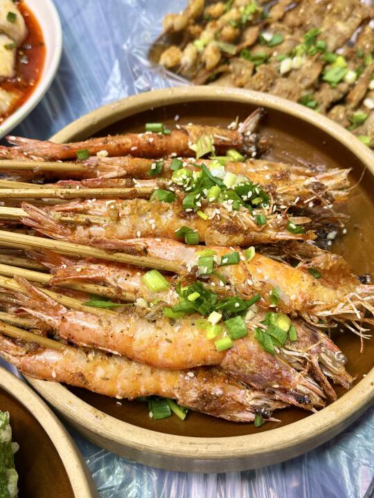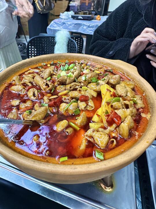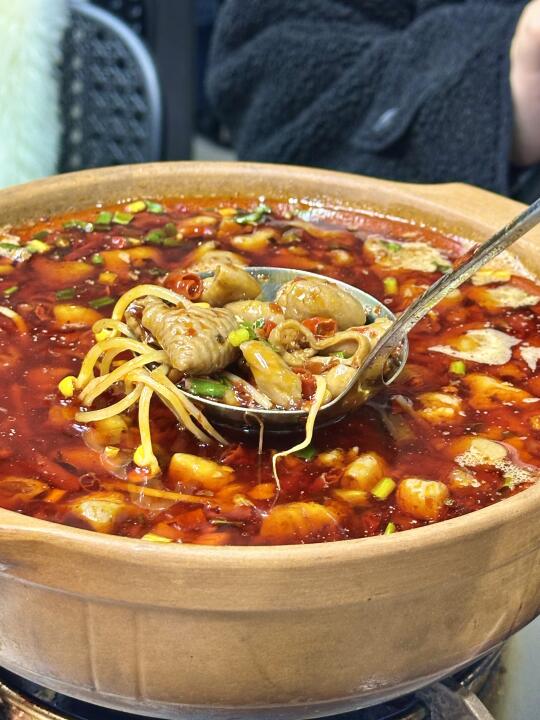 真的是最近在宜昌吃到zui好吃的砂锅了! 就在步行该里面!朋友最近吃上瘾了来了好几次 他们家肥肠我是真的爱😍味儿很正 配菜也好吃 也不是那种佐料味儿非常重那种 很家常! 冬瓜豌豆排骨汤也很好喝! 喝汤还有点冬瓜淡淡的甜味 凉拌鱼片和这个串串香辣虾 也都是每次都要来一份的 烧烤都是炭烤 很下酒!!