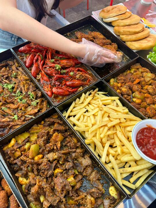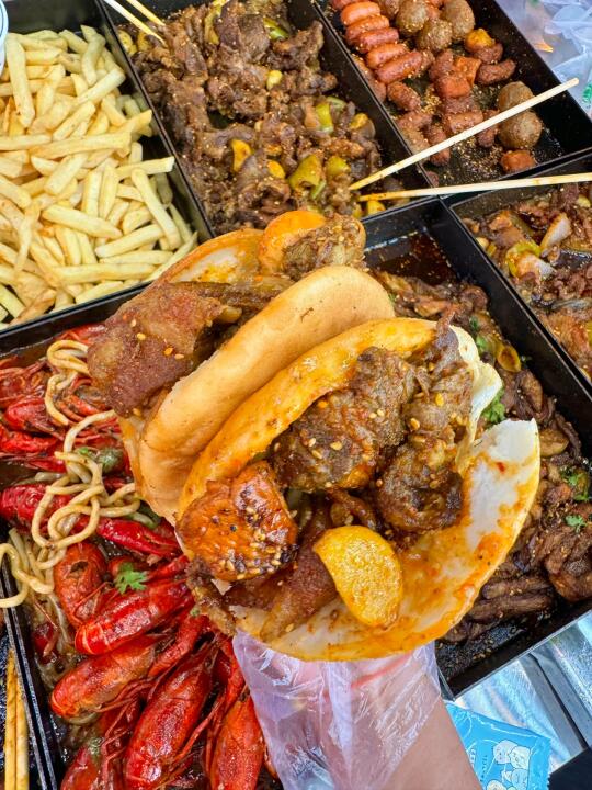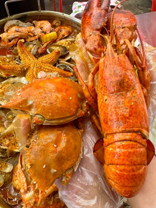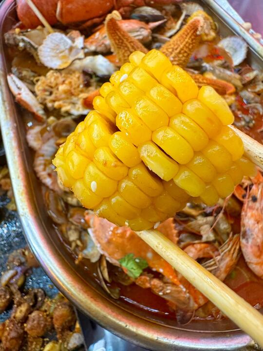 外地朋友来想吃戳子肉、吃海鲜、去啤酒屋……十次有八次我带来这,10多年了!!! 来的大多都是回头客,海鲜戳子肉都有,价格还实在! 我一般来都点戳子肉:戳五花、戳鸡翅、戳火烧、戳小龙虾拌面……基本上能想到的戳子都能戳!!! 这次我买的13.6r卷,戳五花肉、戳菜花、土豆丝和小饼!!四个菜13.8r,真很实在 我们六个人又戳了点别的,还有海鲜大咖,虾、螃蟹、扇贝、蛤蜊、海蛎子、玉米……一锅都有 酒我喜欢喝蓝莓啤酒,度数很低还好喝!!!