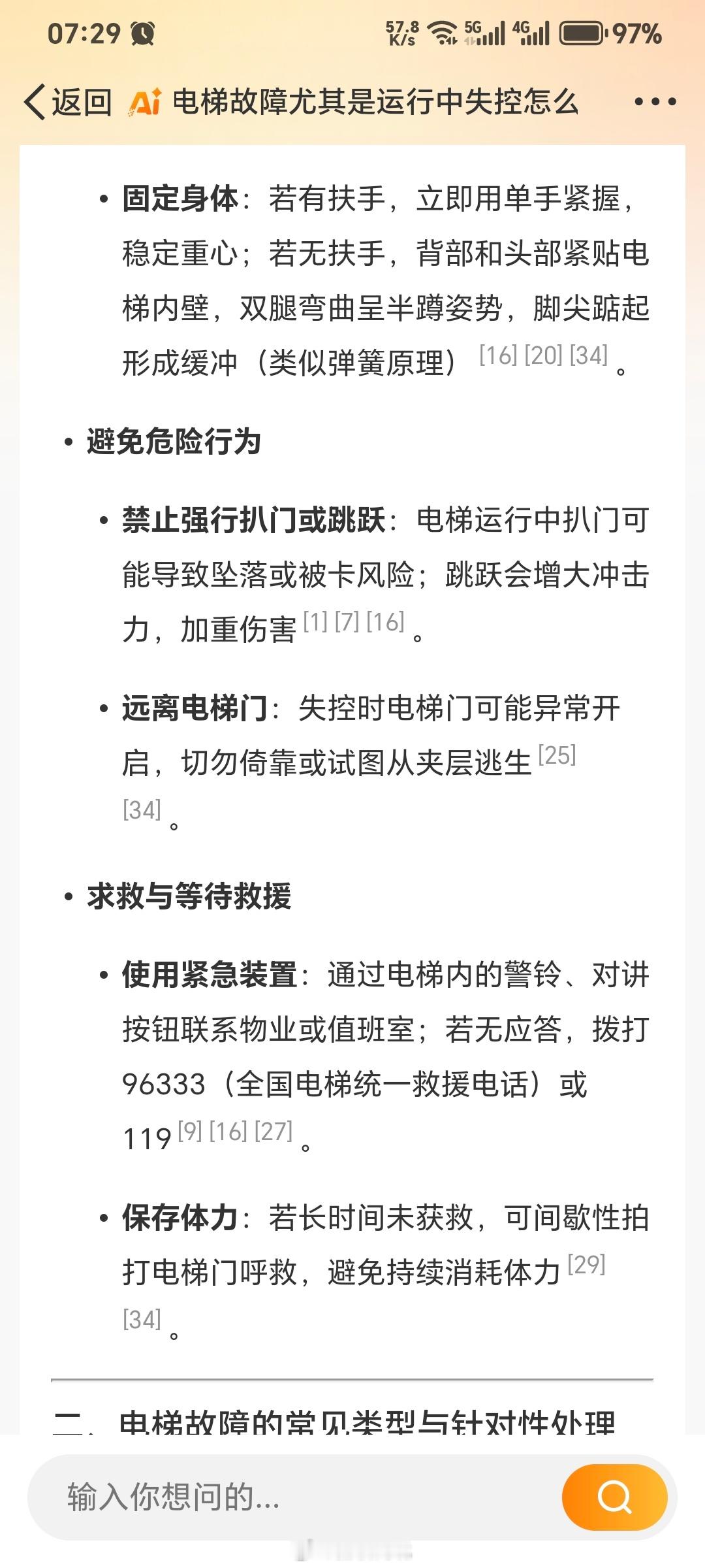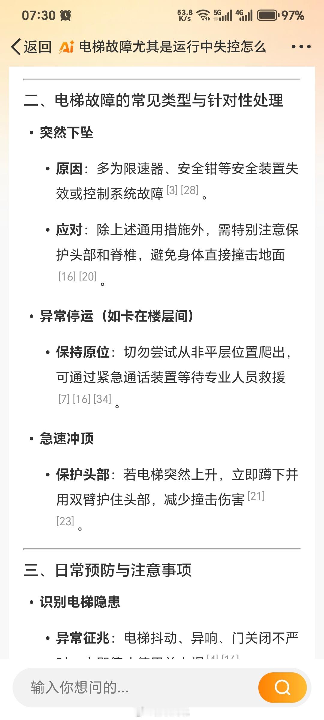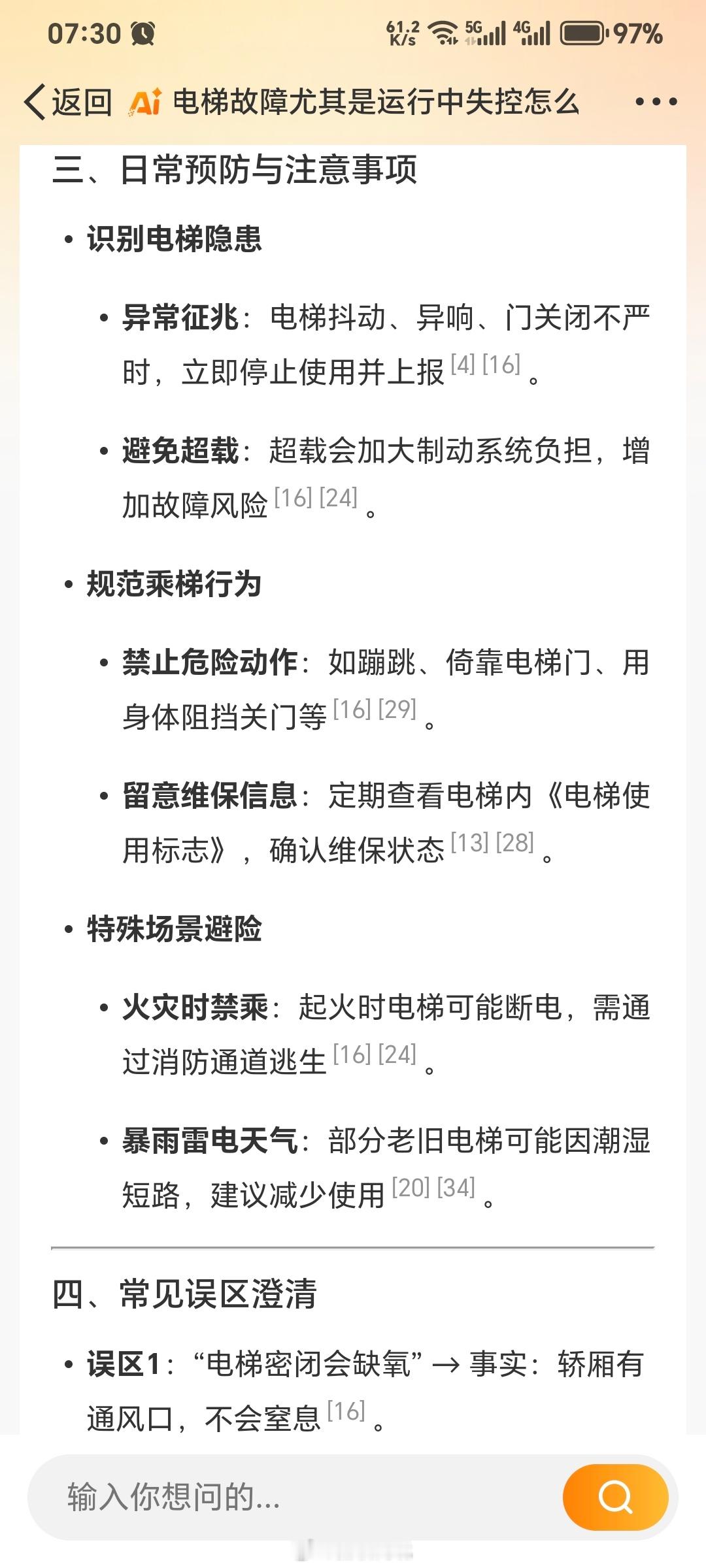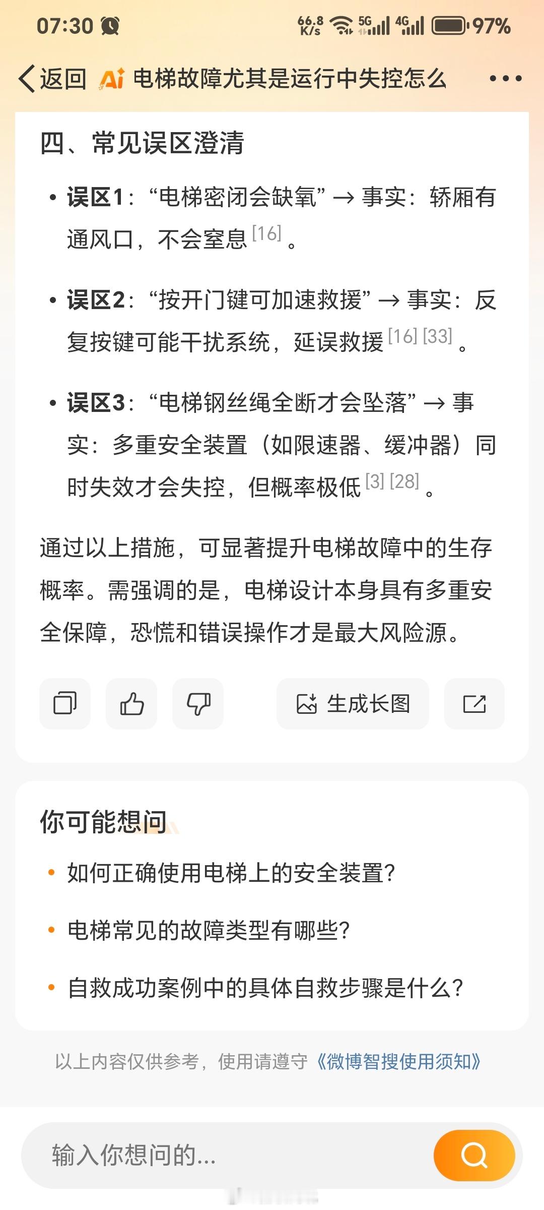 遇上电梯故障尤其是运行中失控怎么应对?听听微博智搜怎么说?我觉得这份指南总结的很好。