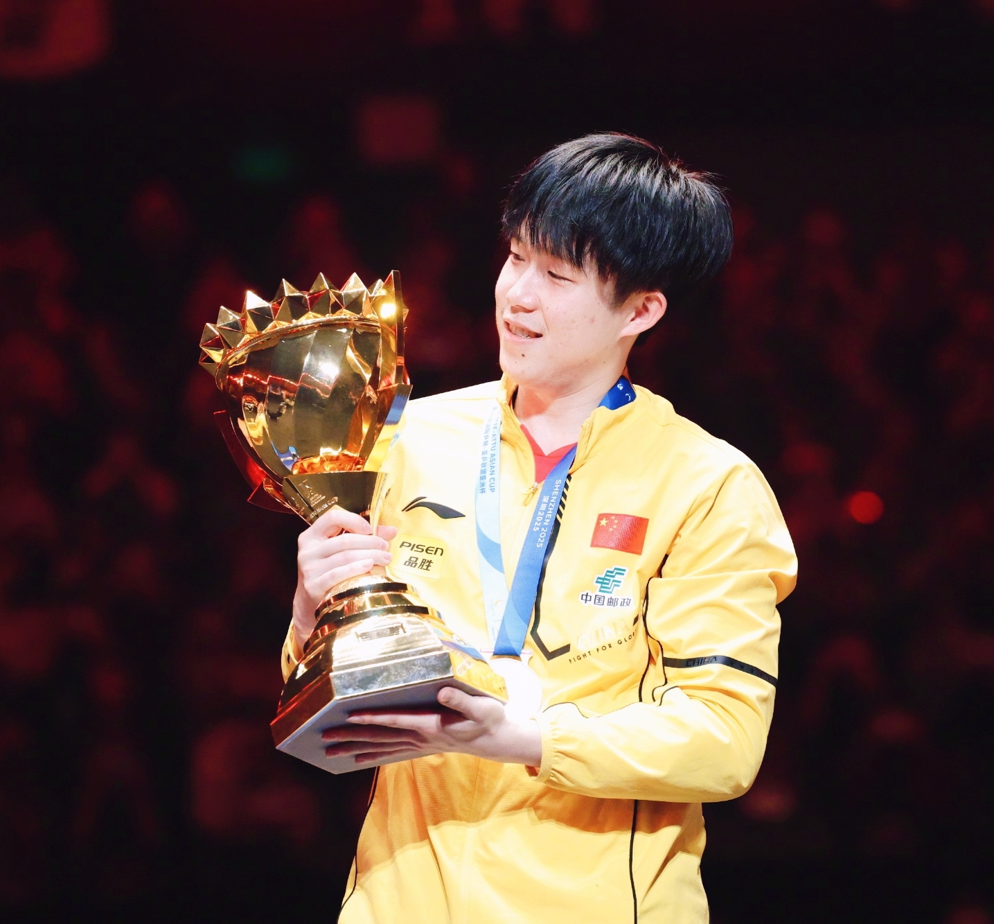 王楚钦称庆祝动作是在指奖杯…“这奖杯金灿灿的!我喜欢😍我喜欢我得到”