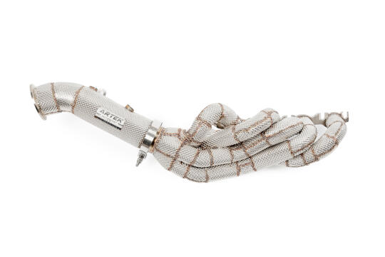 给r8/兰博基尼v10更换artek排气芭蕉 对于原产马力而言主要还是为了 1.改善声浪 2.减轻重量 但是对于大马力车子而言、主要还是为了性能 1.降低排气阻力 2.加快热量散发 3.优化燃烧效率 有具体的产品细节图片可以供大家参考 对于一台双涡轮v10的奥迪r8而言、肯定最重要的就是降低排气的阻力、能释放更大的马力