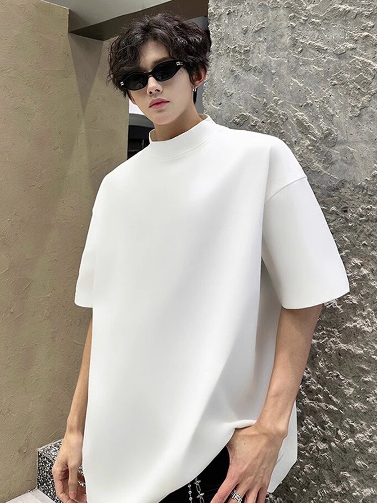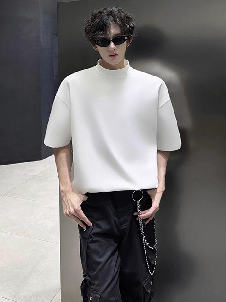 白色半高领短袖男款美式痞帅高级感t恤cl
