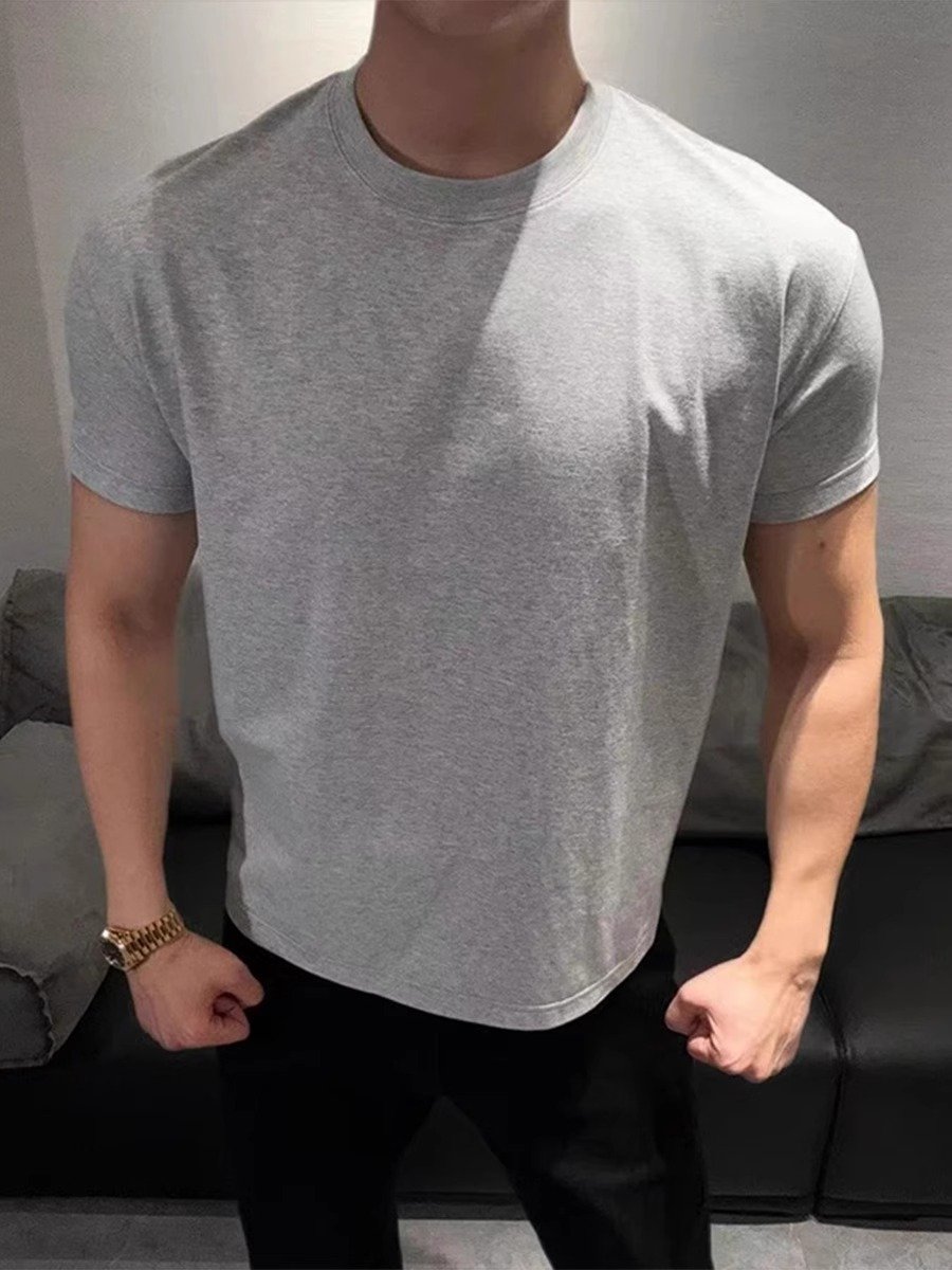 灰色假两件亨利领短袖男夏季老钱风穿搭半袖