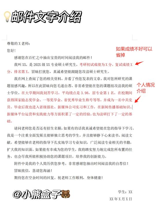 2⃣以上的邮件个人介绍仅供参考,大家可以多搜集个模板,整合一个适合自己的,少点假大空的话,真诚一点,目的是让老师看到你的有点和学习的决心