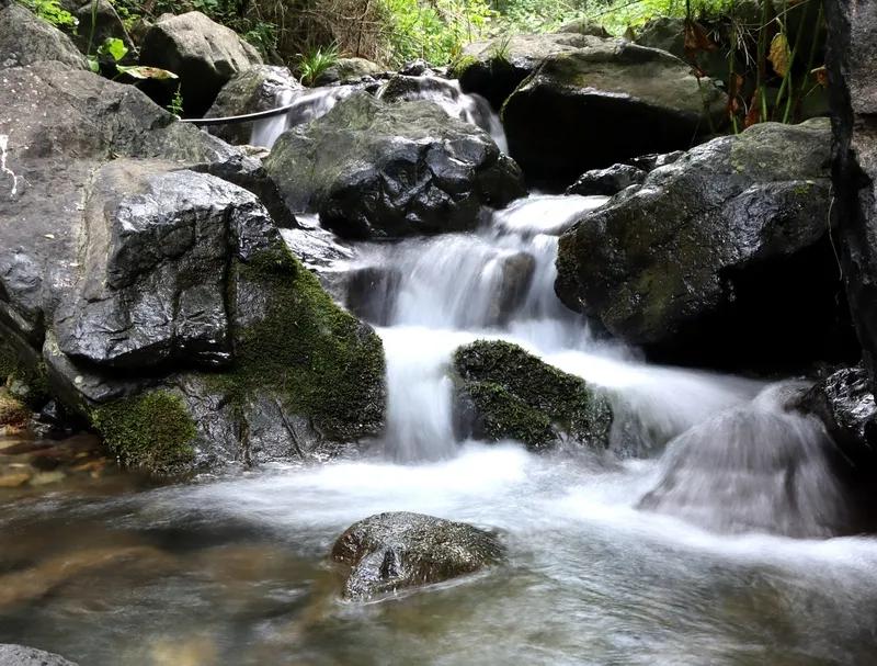 翠谷林如幕。正潺潺、溪流穿石,跳珠飞雾。 苔染苍岩添幽致,漫惹闲情无数。 听鸟语、清音盈路。 叠瀑层峦皆入画,似仙源、隔绝人间苦。 心已醉,意难负。 暂抛俗事寻佳趣。任逍遥、尘嚣远避,静思凝伫。 风抚繁枝摇光影,独爱林泉朝暮。 且寄兴、烟霞深处。 愿化幽溪一滴水,伴松涛、共把流年度。 歌未歇,韵长住 。