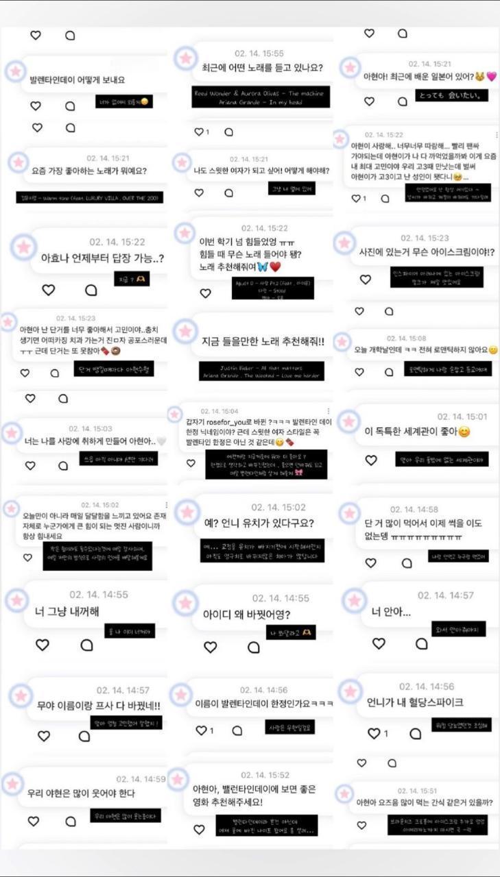 因为公司禁止艺人回评论,所以郑雅贤把评论区的问题都截图下来一个一个回复,最后做成了主页背景,还贴心地给每个人的头像名称都打了码,好真诚的小女孩