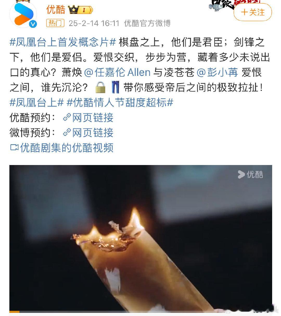 任嘉伦新剧《凤凰台上》情人节首发概念片,官博还卡点任嘉伦生日发[送花花]区别于别的剧甜蜜氛围,《凤凰台上》这对剑拔弩张,与众不同,真刺激,期待萧焕[送花花]