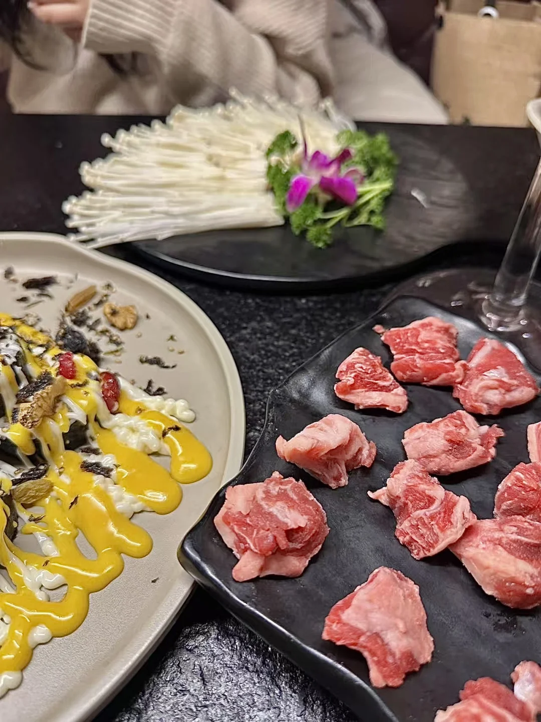 救命这是什么神仙摆盘!猪颈肉卷成玫瑰花瓣,底下藏着QQ弹弹的劲弹肉。