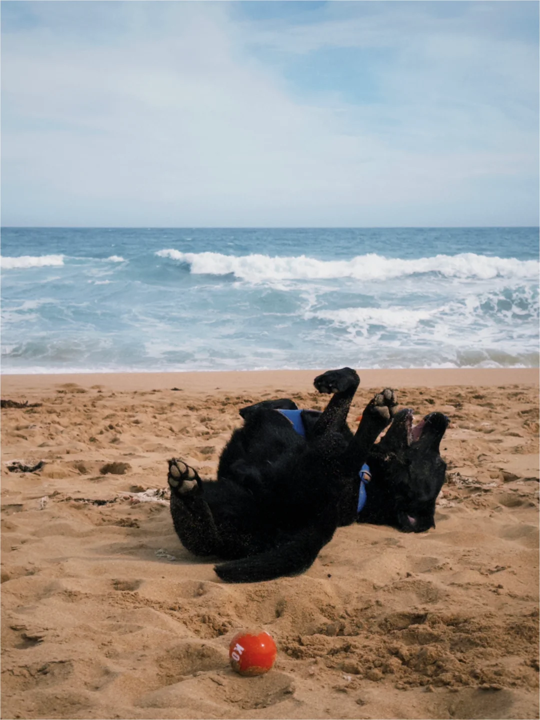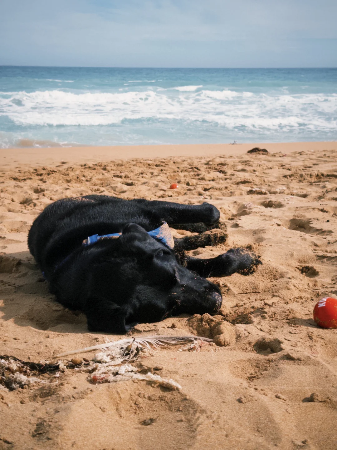 拉布拉多 小狗在海边 狗狗日记 再抓住夏天的尾巴一下 那天浪太大了不适合游泳 那就打滚跑跑吧 🫧