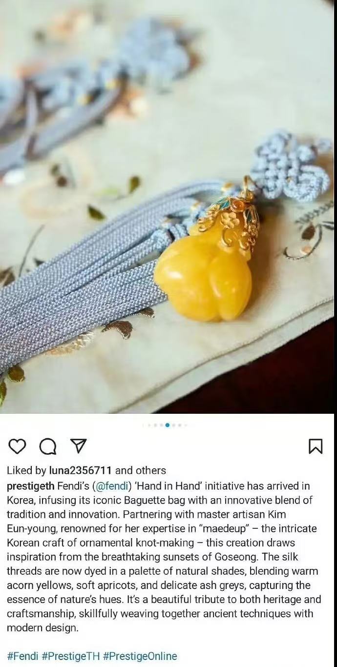 此前,有网友发现FENDI官方账号将新品中类似中国结的工艺描述为韩国工艺,并以此介绍韩国传统文化,引发争议。
