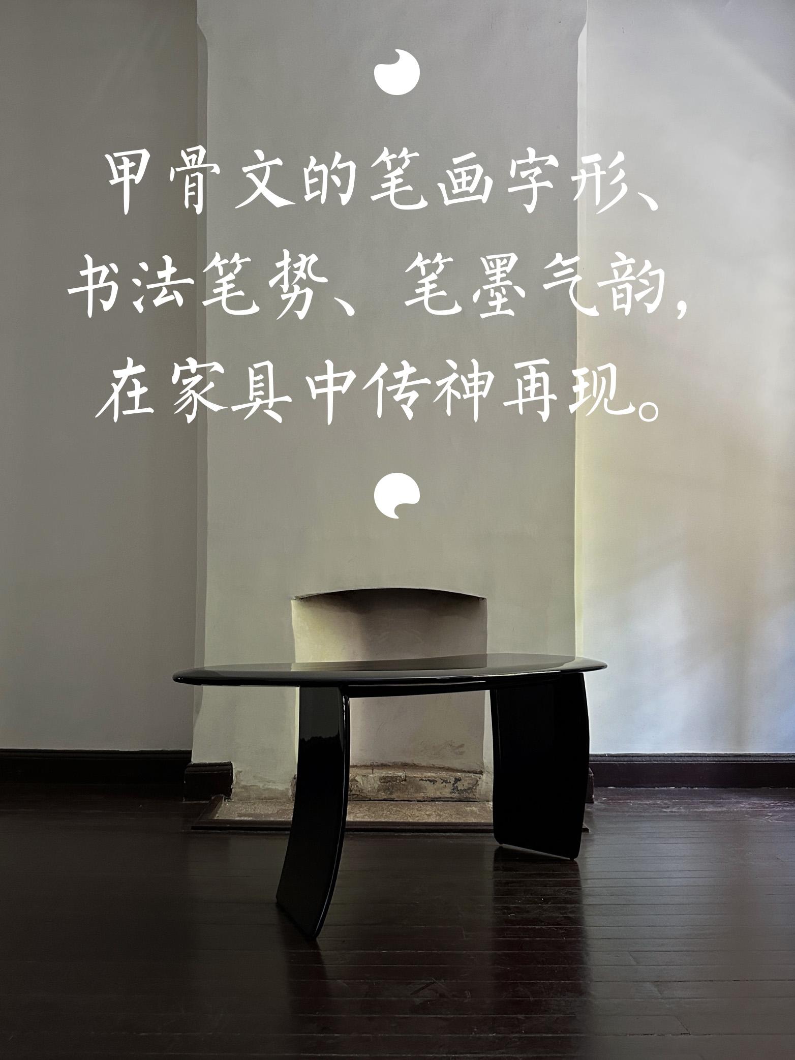 “Cave”系列将敦煌石窟意境与精神重新建构。“甲骨文”系列挖掘人类造字之初的探索精神和文字艺术,从笔画字形、书法笔势到笔墨气韵,都在家具中一一再现。总