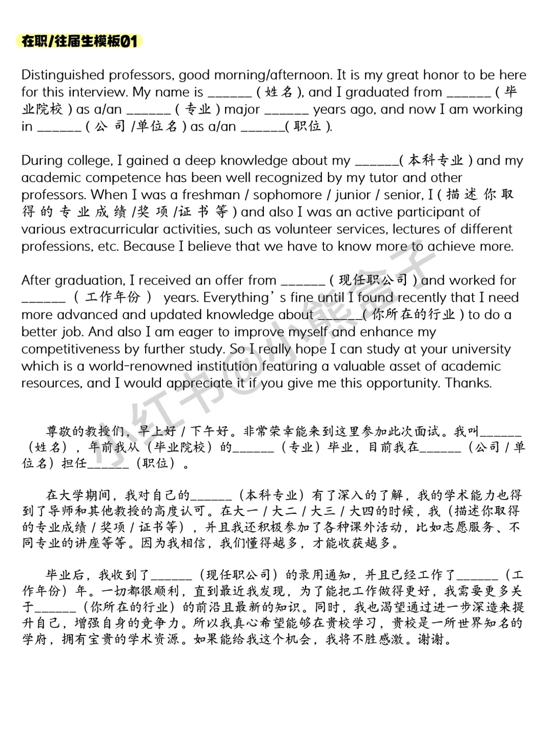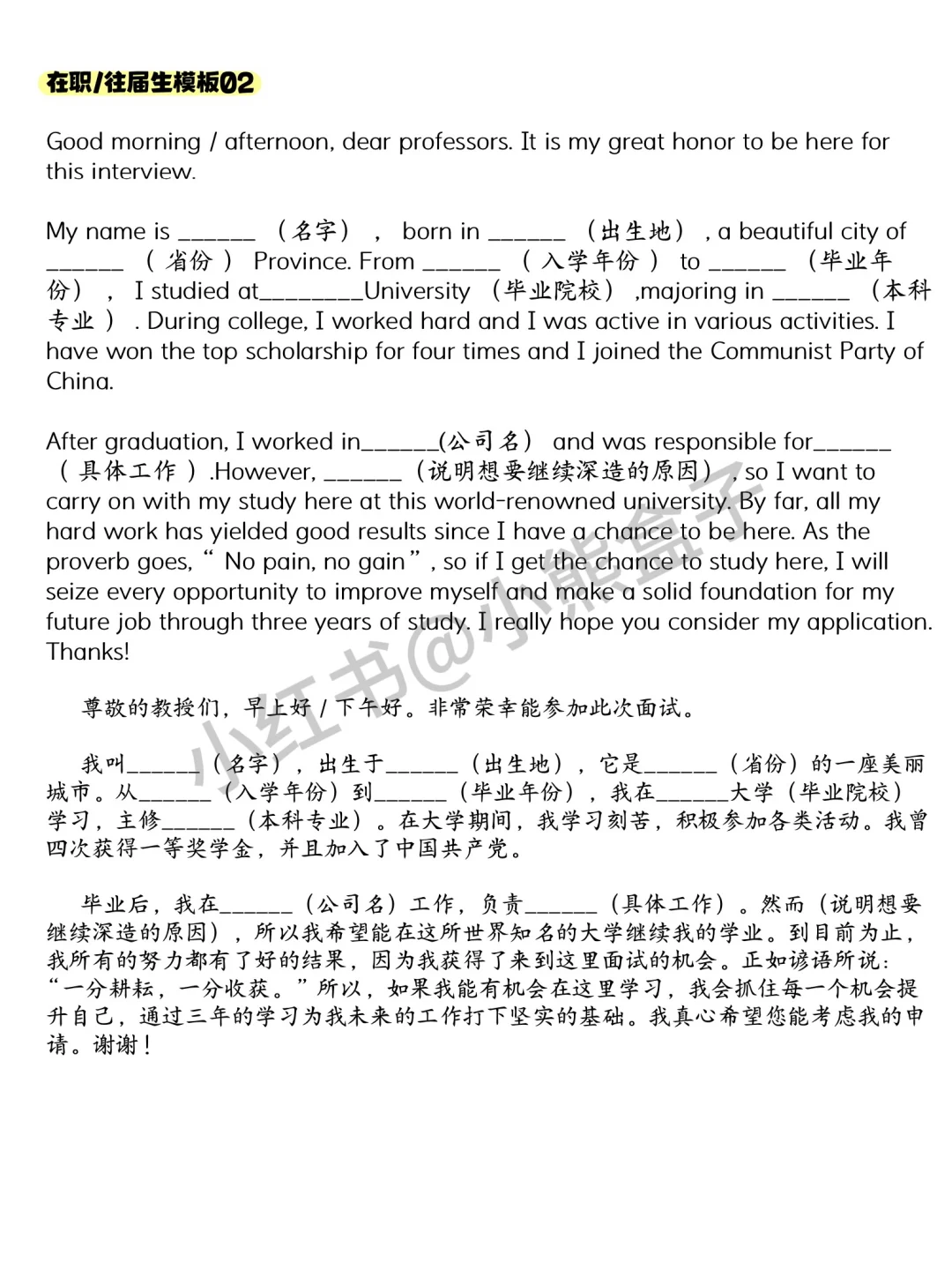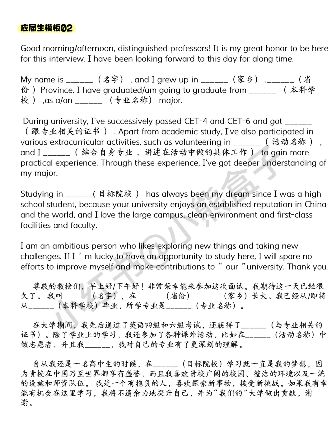 25考研复试英文自我介绍模板❗️(应届➕在职版