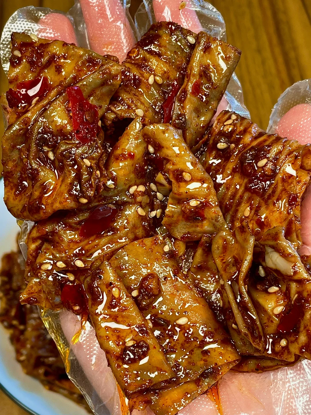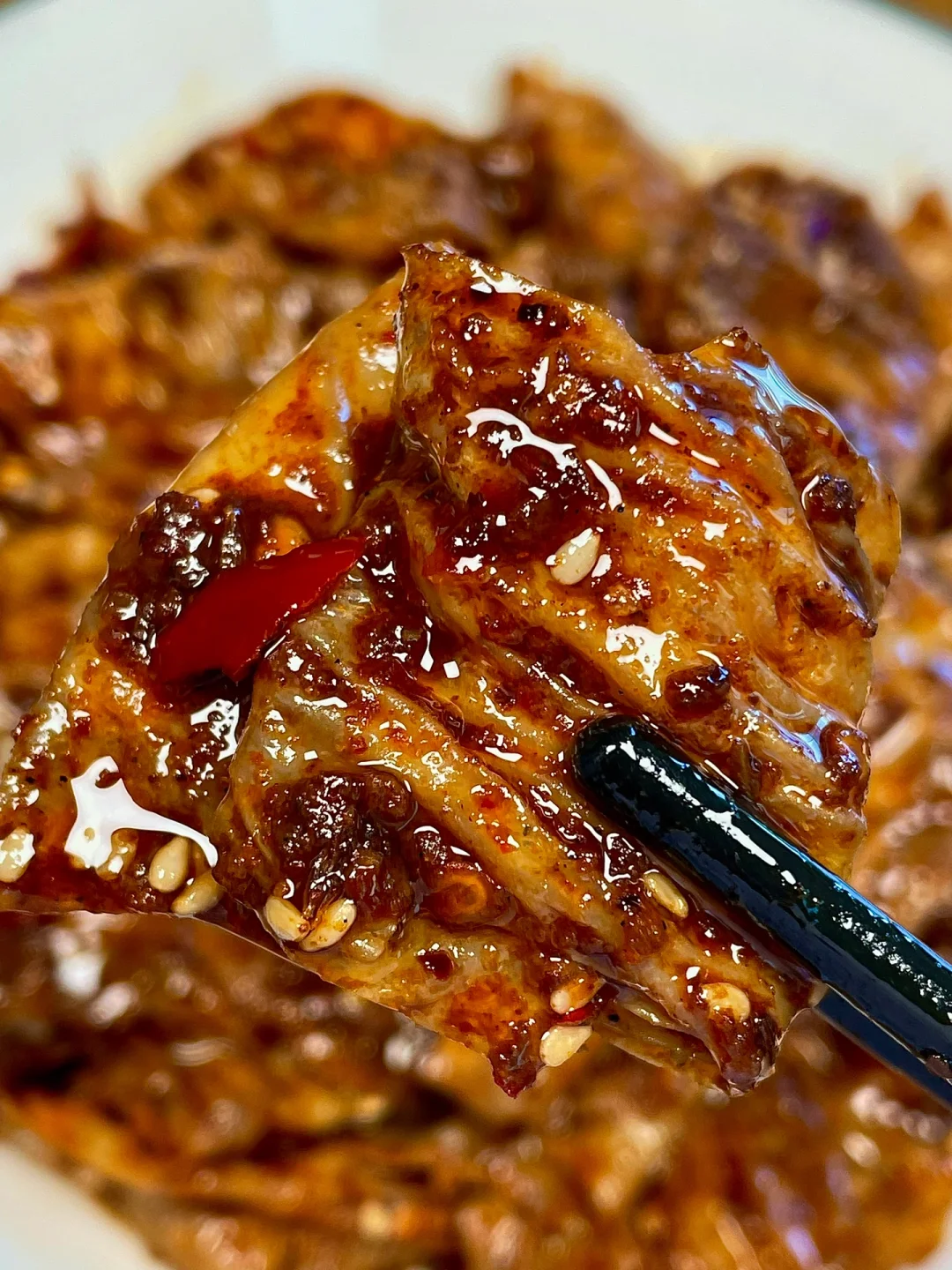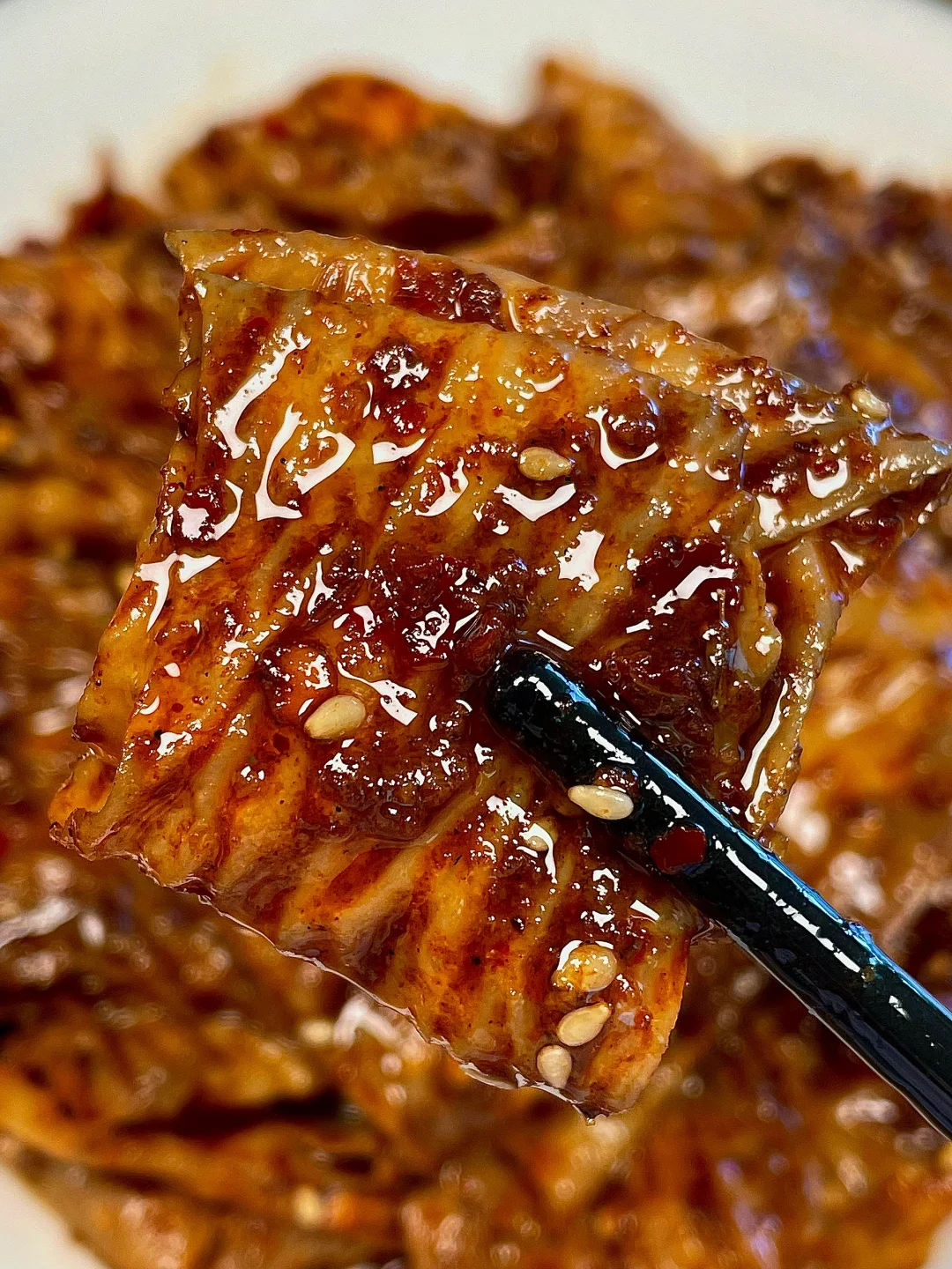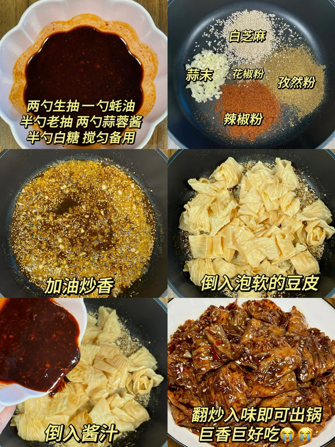 香辣孜然豆皮!绝了!一出锅就香迷糊了[色色R] 香辣入味,孜然味浓郁,裹满酱汁好吃到炫不停! 真的巨香!做法简单,求你们都去做!! [向右R]食材:豆皮 [向右R]做法:如图所示!