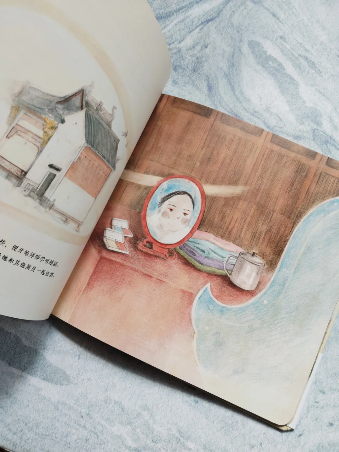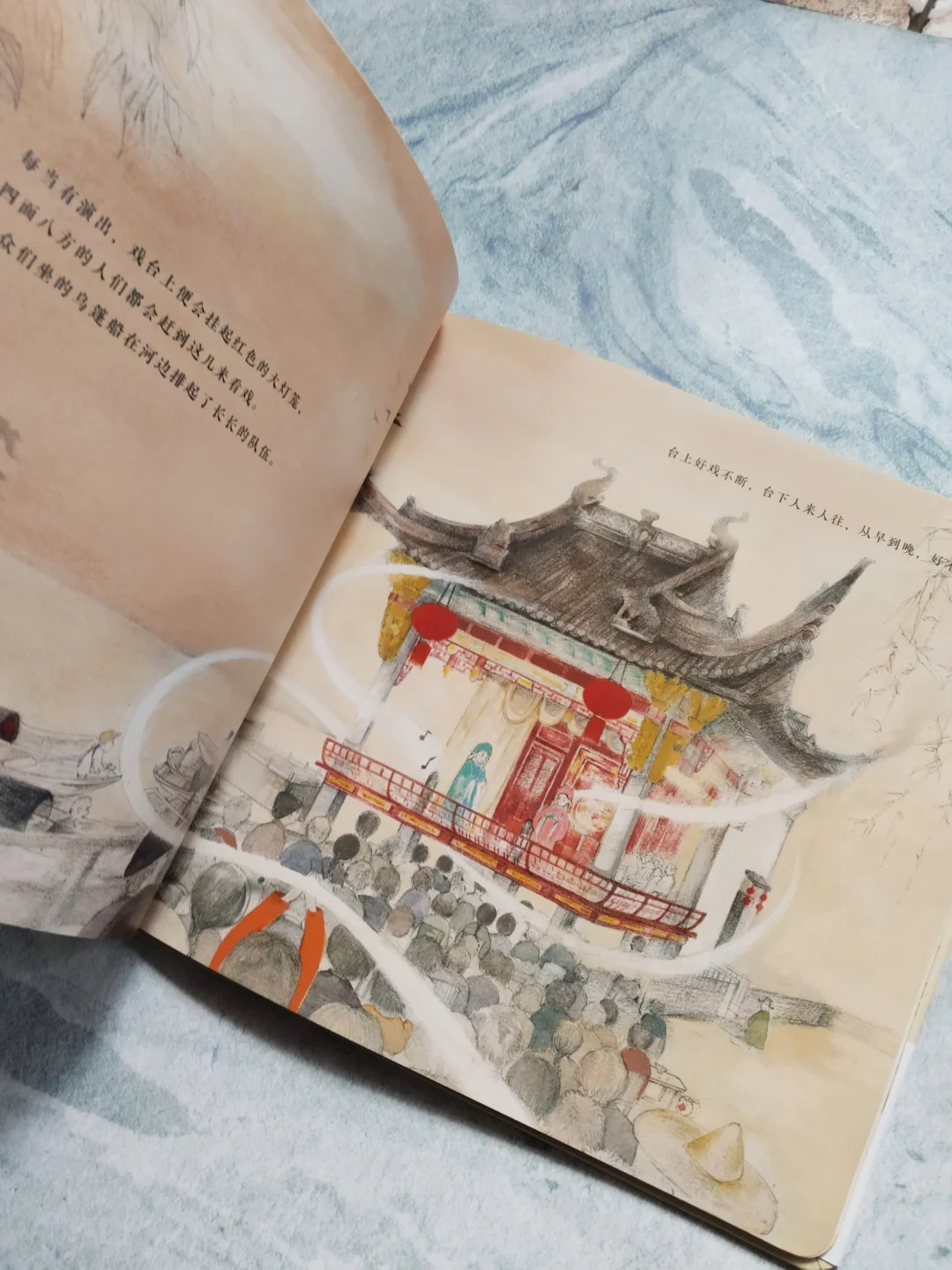 所以这部绘本承担了非常多的功能呢,我们的孩子在欣赏完绘本之后,除了得到美的熏陶、故事的影响之外,更是可以对于越剧,对于古建,对于外婆的童年,等等,都有了更多的了解。