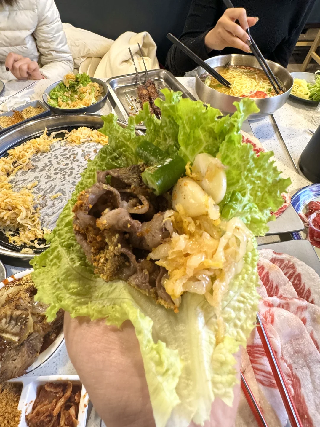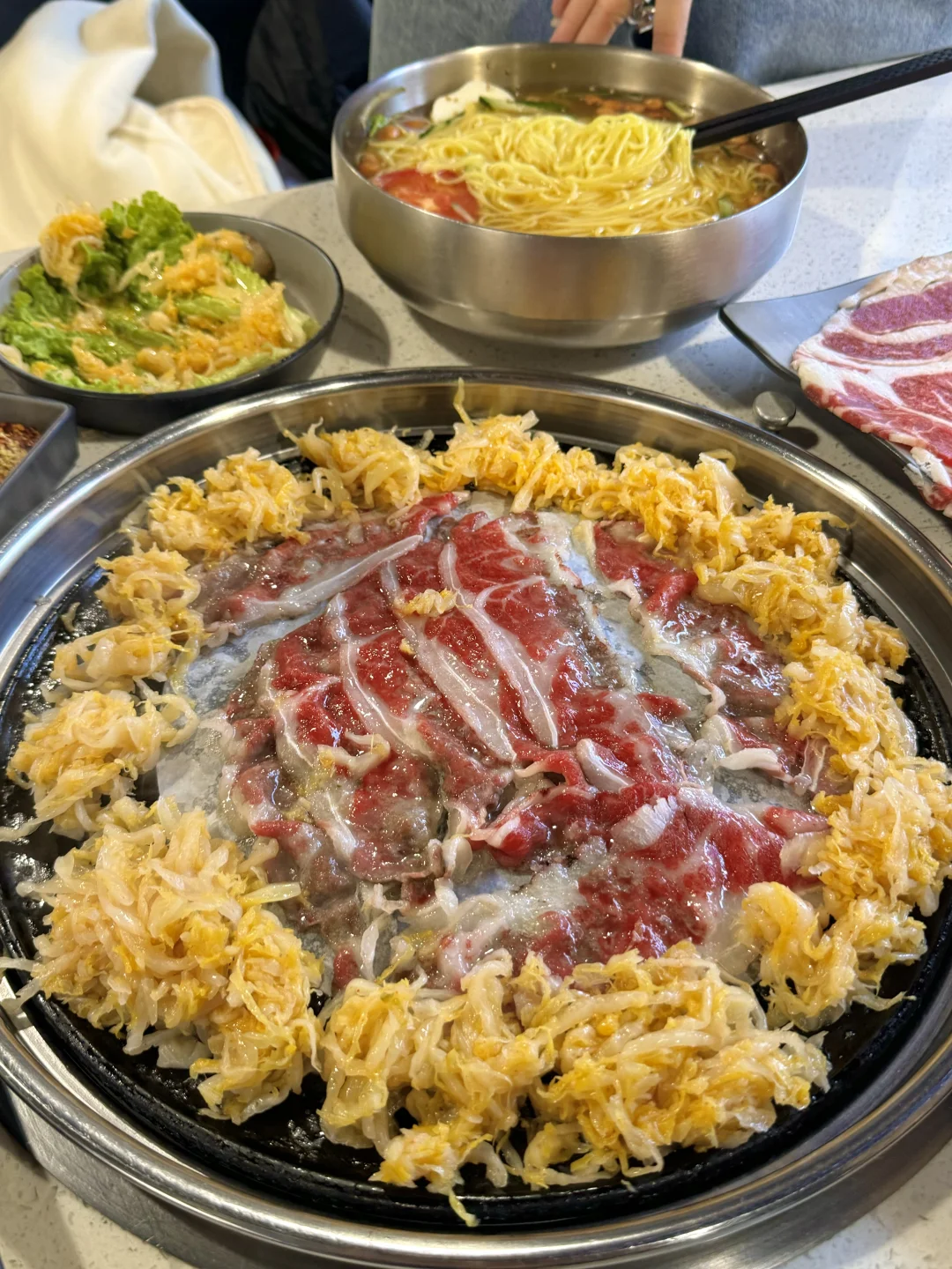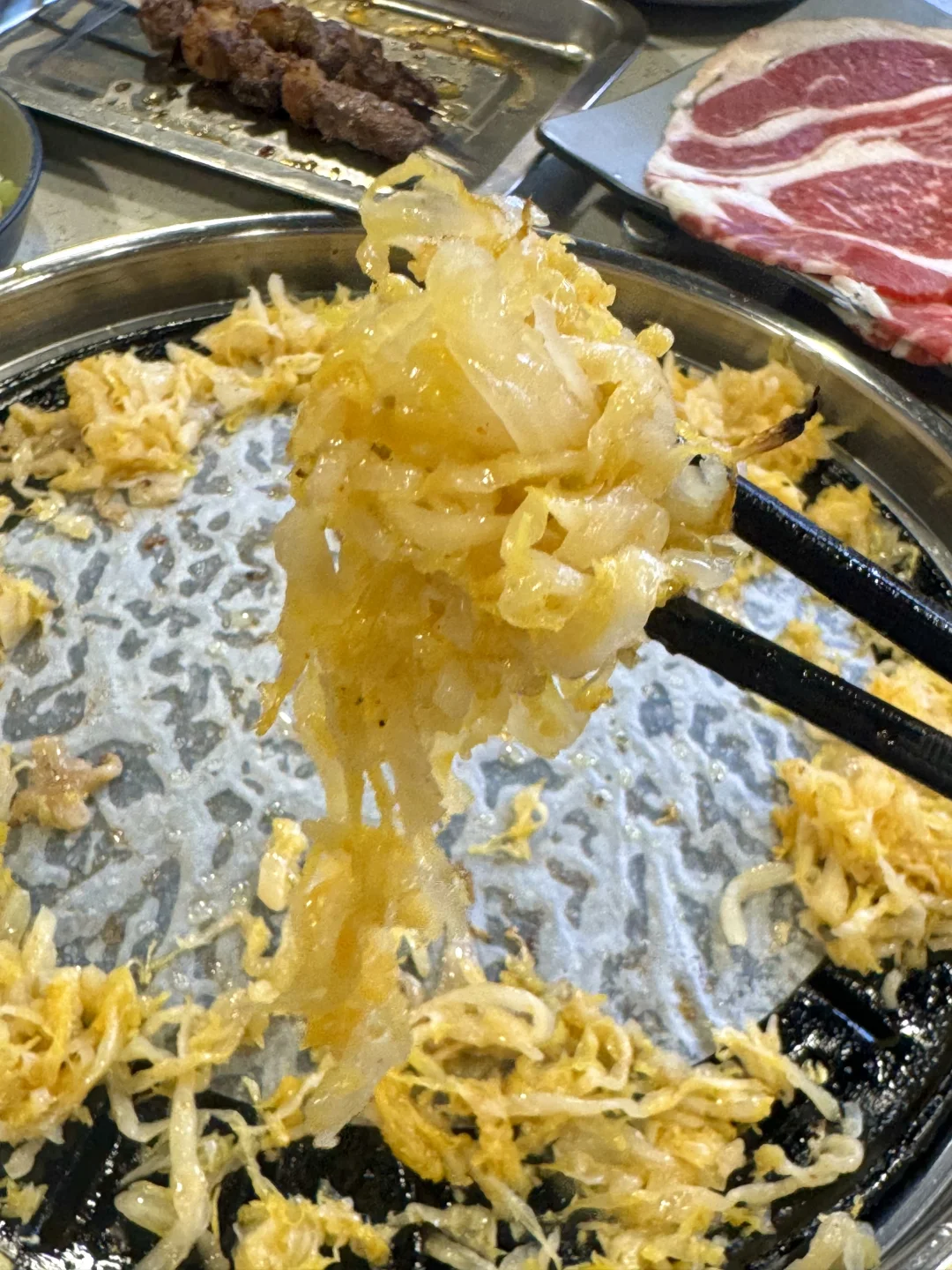 宫后夹肉名不虚传,都是齐齐哈尔空运过来的 还有烤酸菜,酸菜五花肉,肉是腌过的,很嫩很好吃