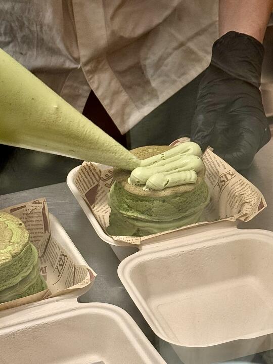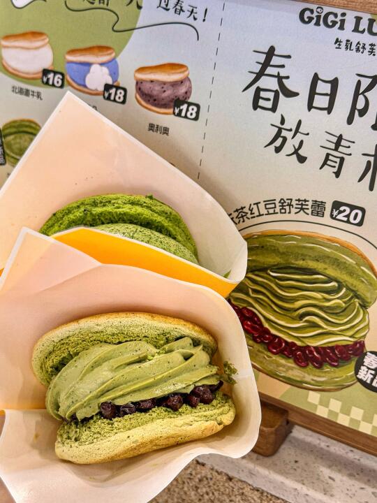 我真服了…… 这个新出的抹茶麻薯舒芙蕾也太好吃了!! 蓬松绵密的舒芙蕾🥞抹茶味🍵也够浓郁!还有层糯叽叽的拉丝麻薯皮! 果然抹茶只有0次和无数次……