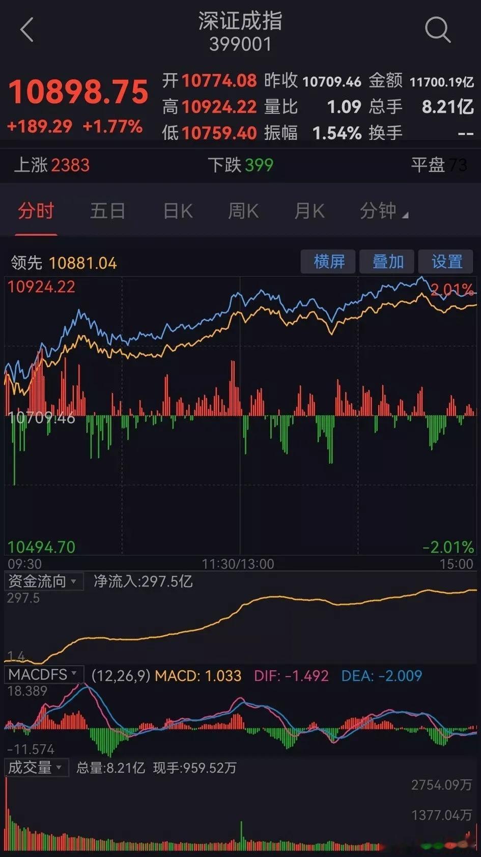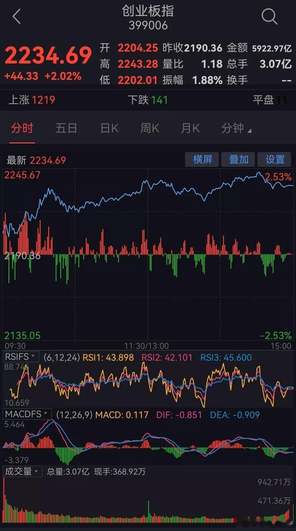 今日大盘放量大幅反弹。