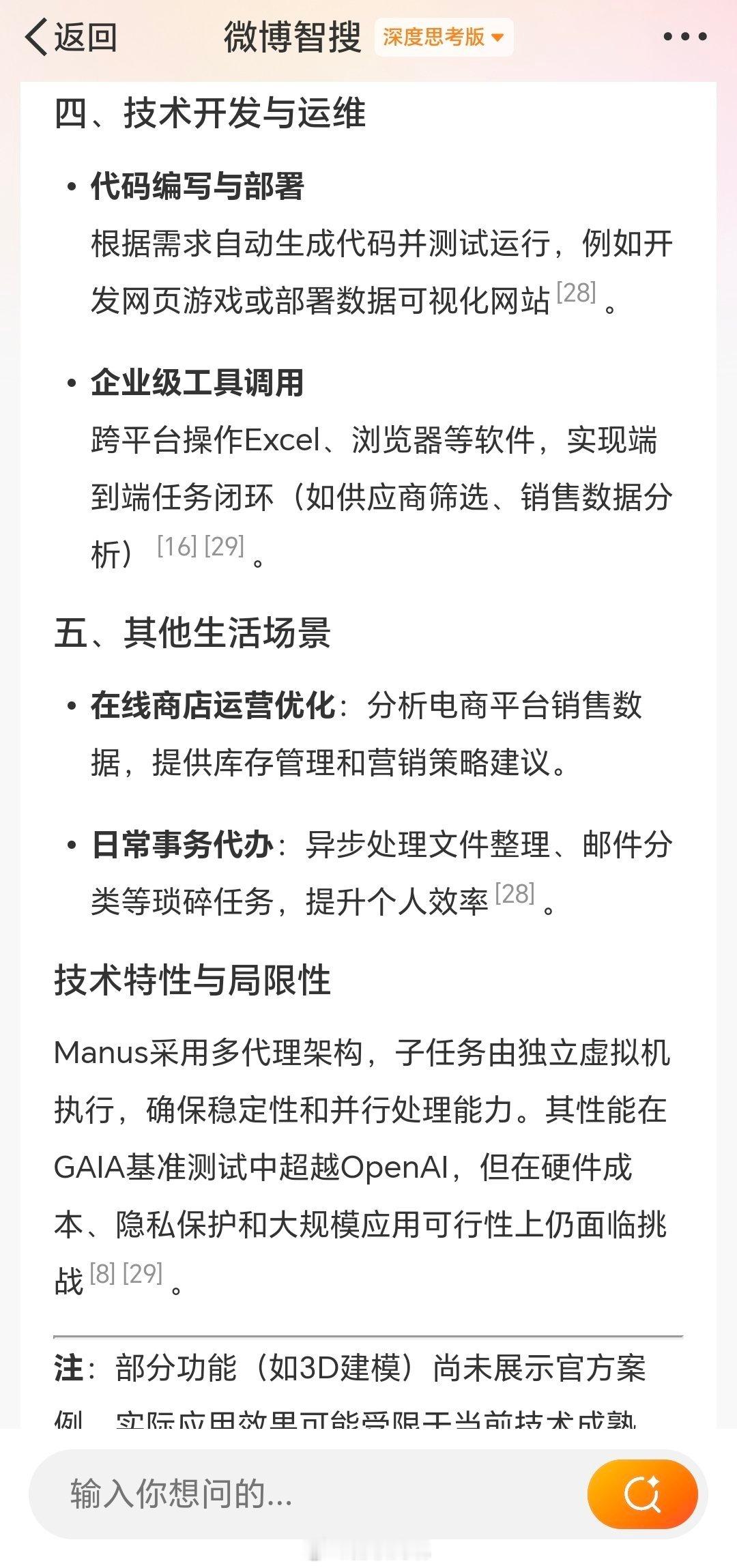 Manus堪称AI界的“六边形战士”!媒体爆料,在金融领域,它凭借强大算法与海量数据处理能力,能对股票市场进行深度分析预测。不仅能精准解读各类财报,还能综合宏观经济形势、行业动态,敏锐捕捉股价波动趋势,为投资者提供高价值决策参考,助力在股海博弈中抢占先机。回到日常办公,它又化身为贴心助理,熟练安排会议、高效整理文档。在内容创作方面,它能依据给定主题,结合热门趋势,辅助撰写风格多样的文案。如此神通广大,你觉得Manus还能在哪些场景大放异彩?快来评论区分享你的奇思妙想