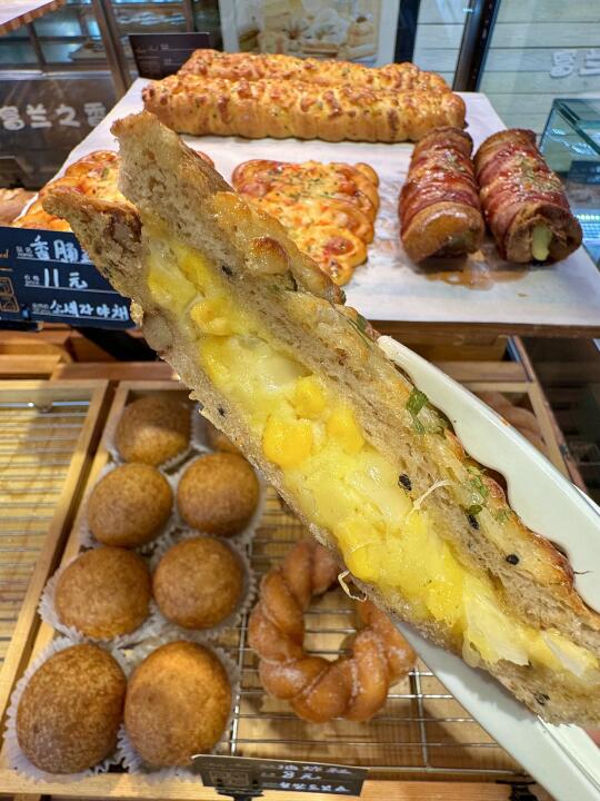 彩虹蛋糕,香肠蔬菜包、土豆面包、豆粉面包……去买还遇到了🇰🇷欧巴