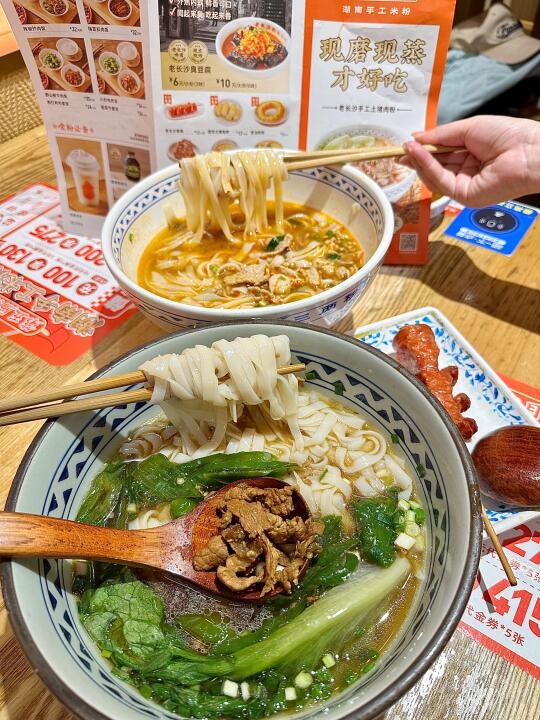 真的不夸张! 能让我湖南朋友在深圳一周吃5次的粉, 就只有三两粉了! 也是我吃过让我蕞上头的湖南米粉了!🤤 现磨的扁担粉,真的是ju香ju滑! 现在还有3月3湖南手工米粉节, 主题店🉑️参与主题游戏,还能🆓嗦粉哟!