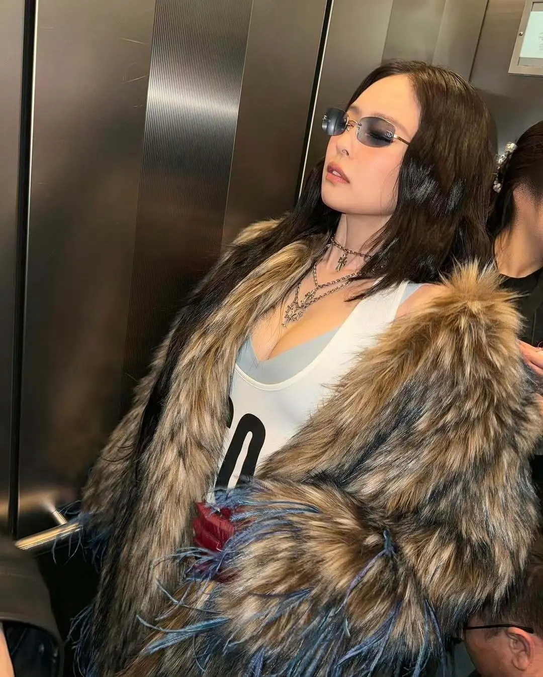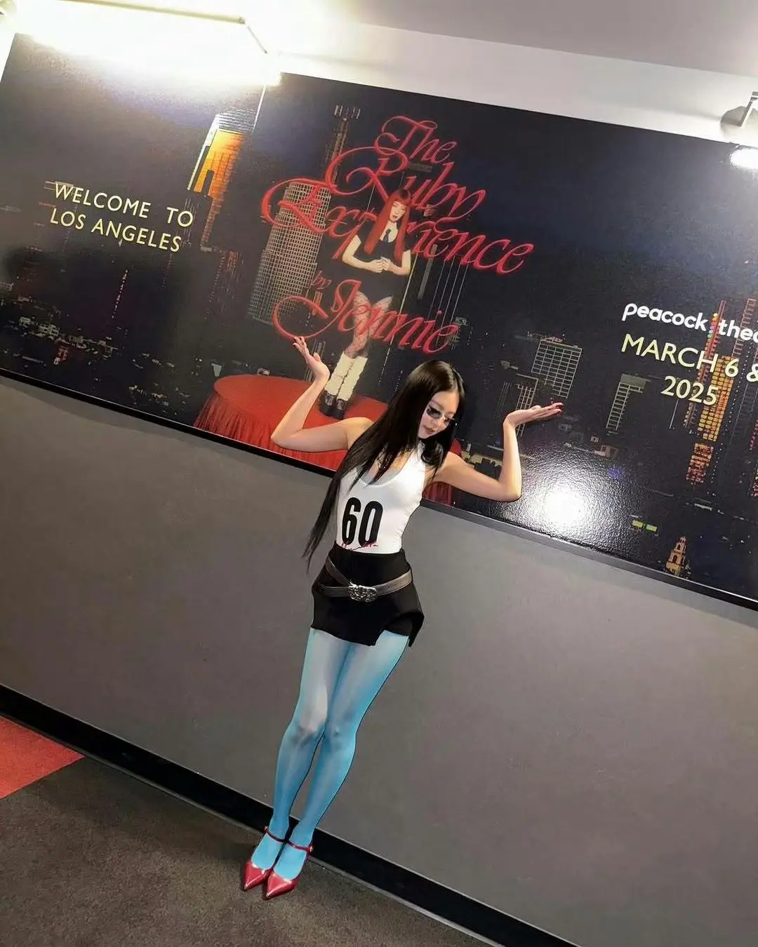 张天爱跟素人合影,胯真的好宽,大宅院似的